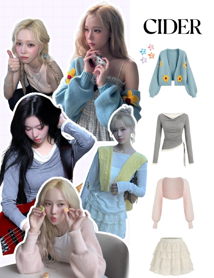 这种以情绪为设计原点的逻辑,与传统时尚品牌追着流行趋势跑的模式形成了本质区别。CIDER每一季的单品开发,回应的不是“今年流行什么”,而是“穿上这件衣服时你是什么心情”。也正是这套逻辑,让品牌在全球范围内获得了BLACKPINK、TWICE、Aespa等顶流偶像的自发上身,以及《VOGUE》《ELLE》等国际时尚媒体的关注报道,和超700万社媒粉丝的持续追随。