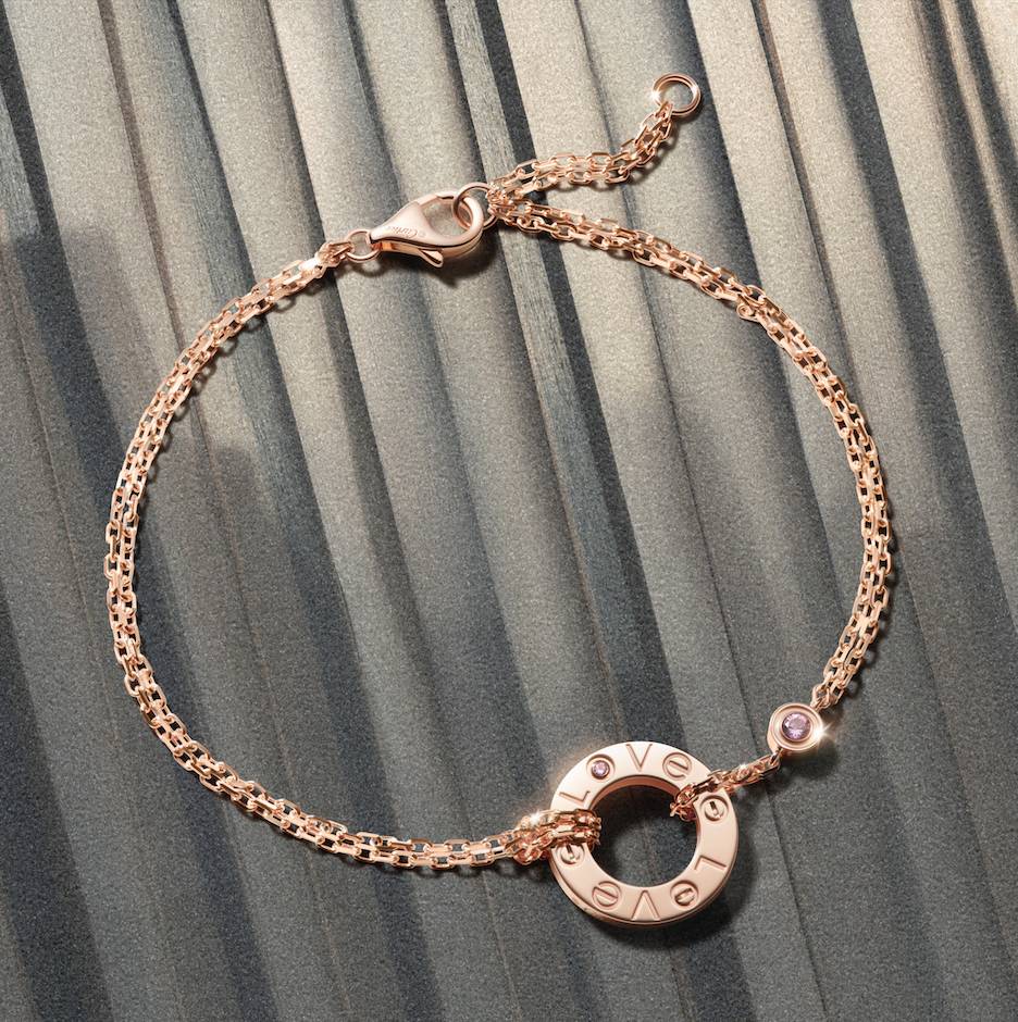 时值520之际,卡地亚特别呈献LOVE系列520特别款项链与手链,为爱赋予全新表达。新作延续了该系列标志性的圆环设计,温润的玫瑰金材质饰以粉色蓝宝石,为整体设计注入了明亮的色彩。