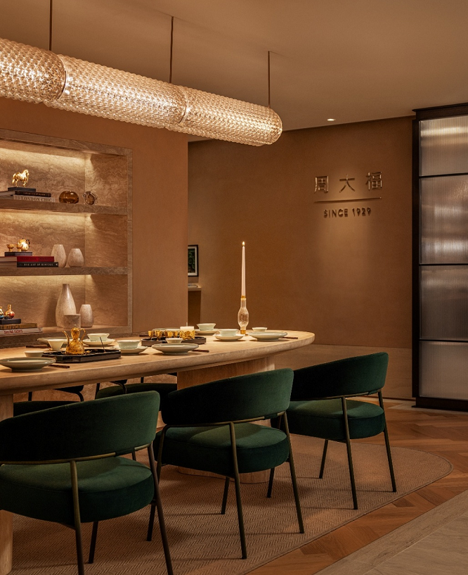 此外,店铺特别设置VIP专区,这一私密区域既可举办定制化贵宾活动,亦可展示周大福臻选藏品及周大福高级珠宝系列等,让消费者在专属空间中,享受更具仪式感的尊贵体验。