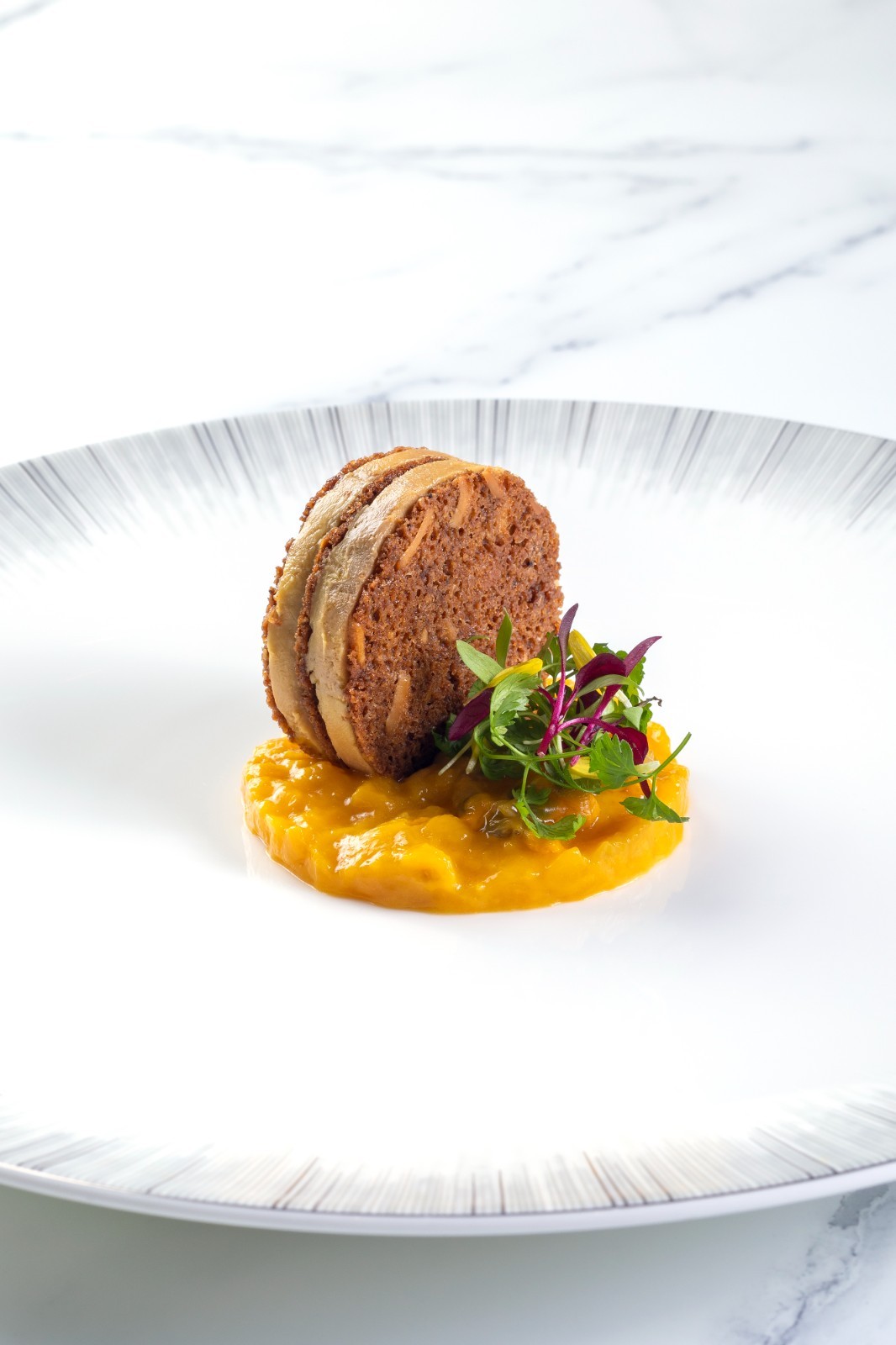 夜幕下的鸢尾宫1893在鲜花和盈盈烛光中营造出优雅浪漫的氛围,开放式厨房令宾客可尽情赏析主厨烹调珍馐佳馔,美食佳酿缔造舌尖臻享。前菜精选优质粉钻法国生蚝,入口鲜嫩多汁美味甘甜,经主厨匠心烘烤配以霞多丽香槟酒汁,浓郁的奶香和酒香的芬芳渲染着夜晚浪漫的氛围,尾调蕴含淡淡的海草和矿物质的香气令人赞不绝口。另有前菜扇贝口感轻盈富有创意,主厨奇思妙想,将新鲜扇贝刺身与五角星形状的青苹果脆丁碰撞发生美味化学反应,佐以日式柑橘汁更凸显扇贝鲜甜滑嫩口感,菜品精心点缀指橙,橙粒爆开清香满溢。鸭肝批气味浓厚香气绵密浓郁,口感愈显顺滑入口即化,主厨将鸭肝表皮烤炙焦香,更显香气十足将浪漫的气氛渲染到淋漓尽致,配上口感扎实的姜味面包和酸甜清新的芒果酱,在浪漫的夜色衬托下令人难忘。