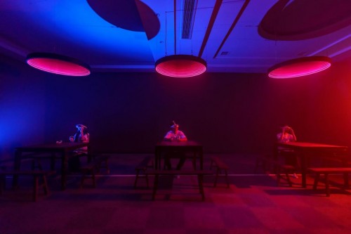 “选择的游戏:‘五光食色’艺术互动体验展”展览现场“红·RED”空间,鸿鹄里文化艺术空间,2023,图片由UCCA Lab提供