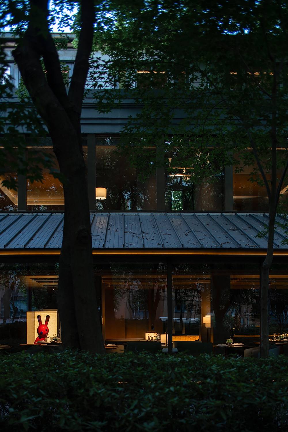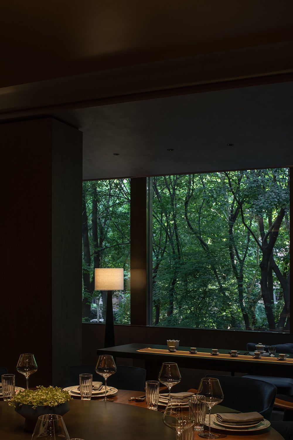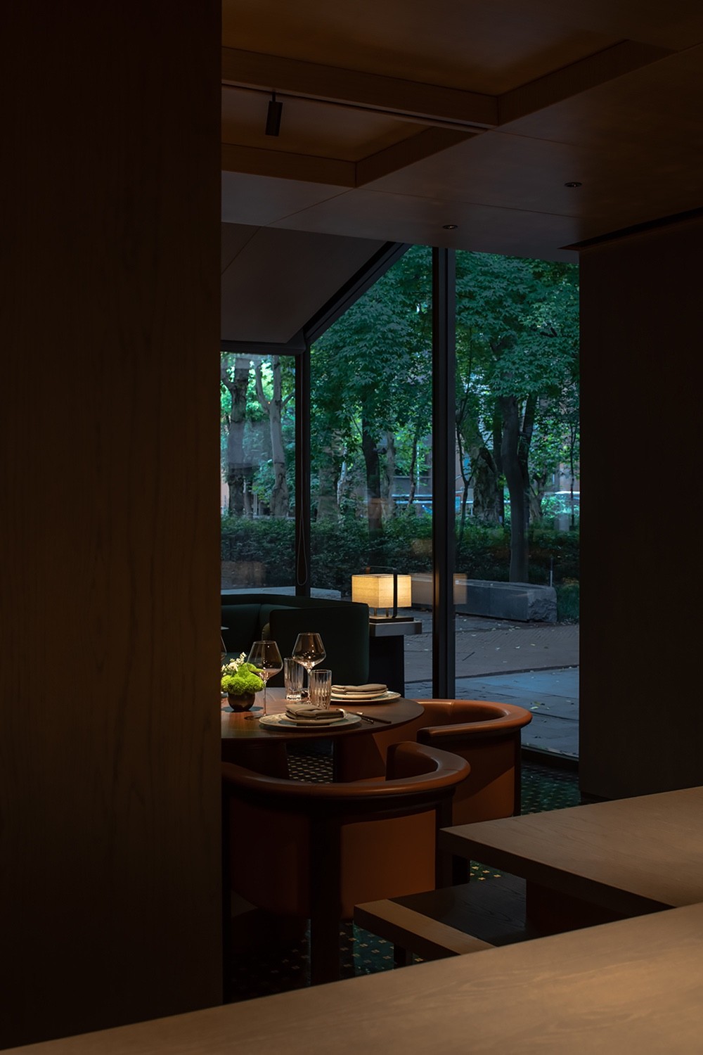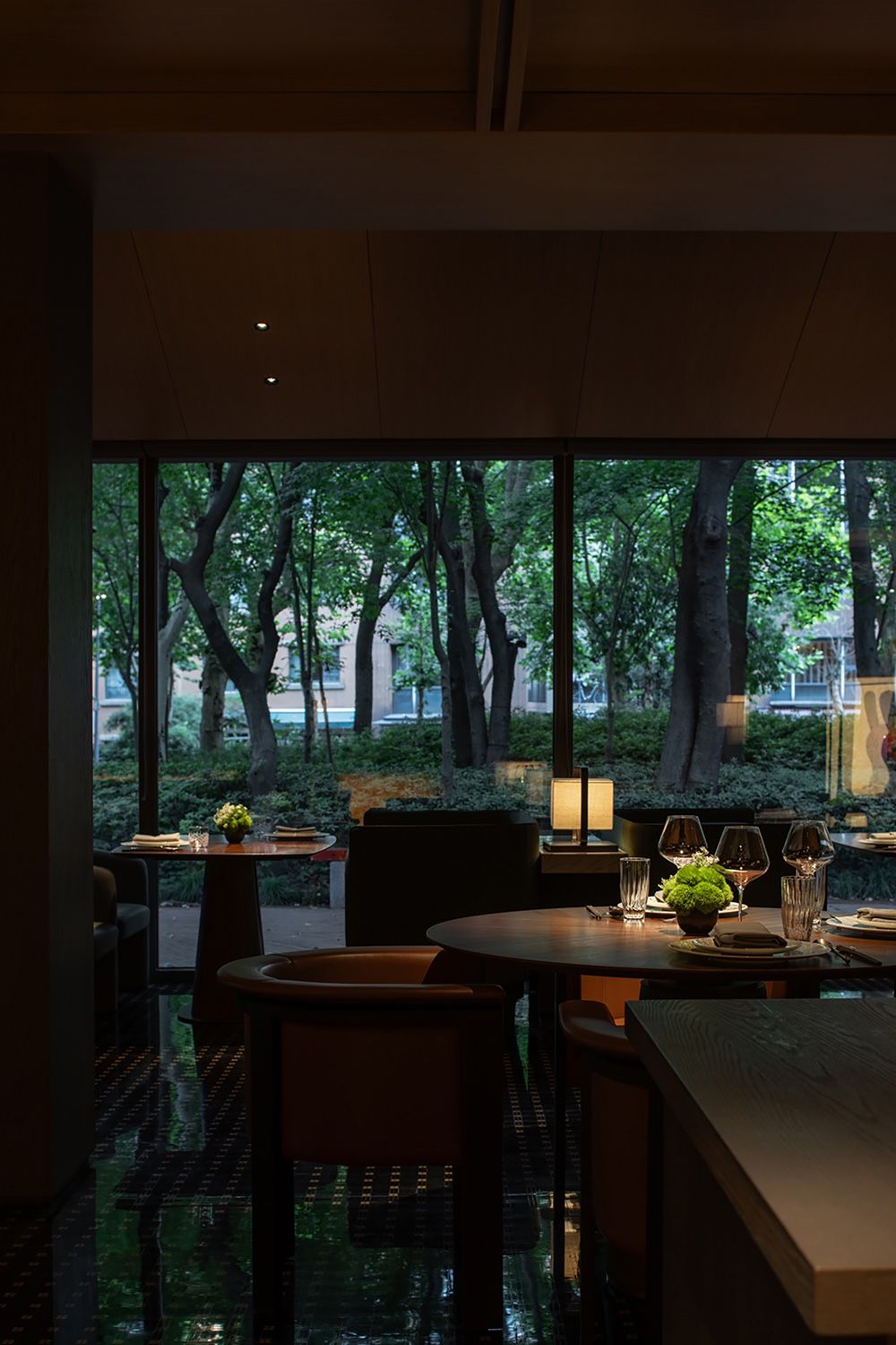 三层的布局呈现环绕式,采取了中式园林当中的复廊形式,以长廊连接中心包间区域和露台,移步易景,共联江诗缱绻,画幅绵长。