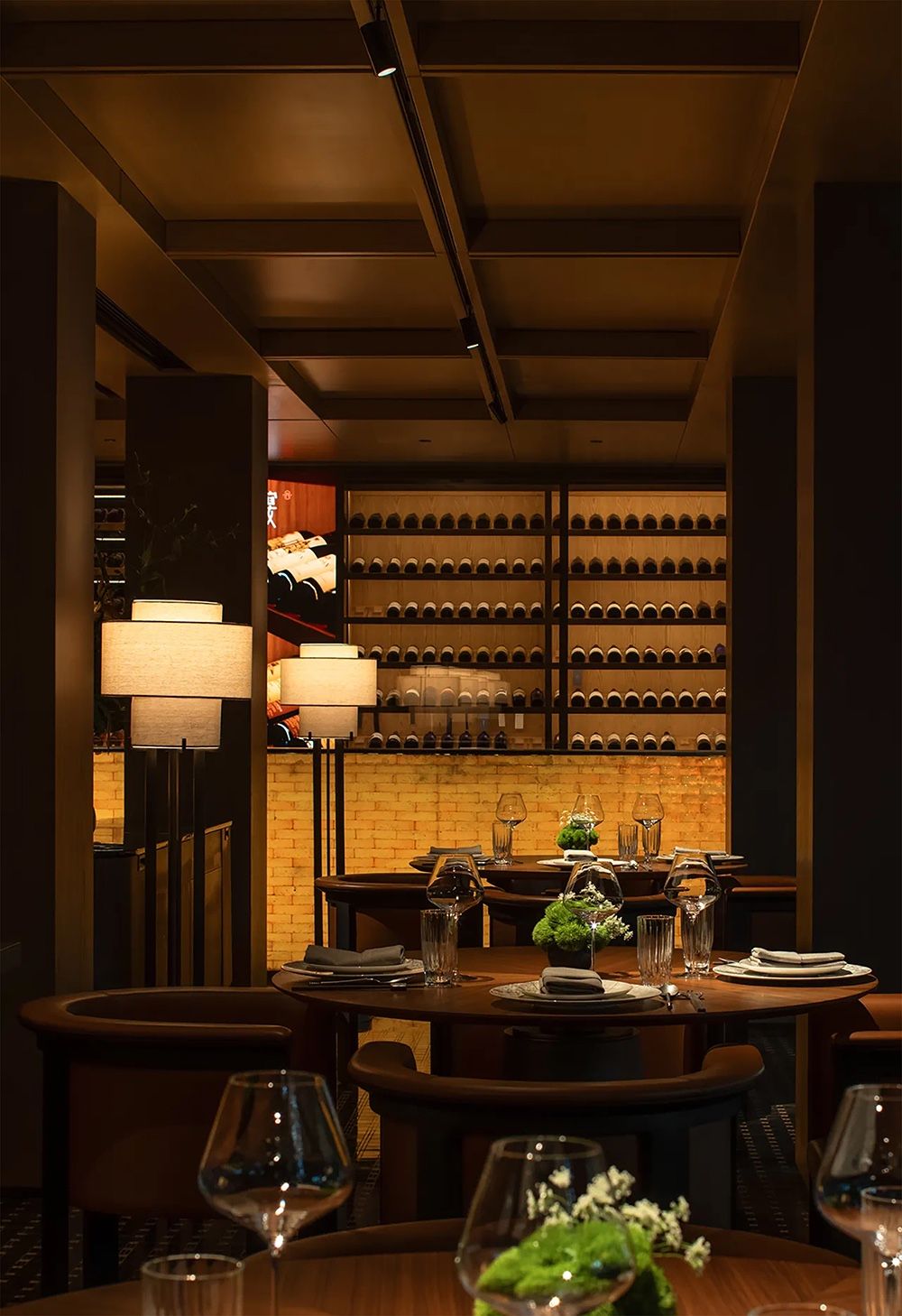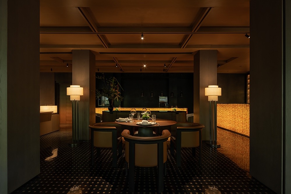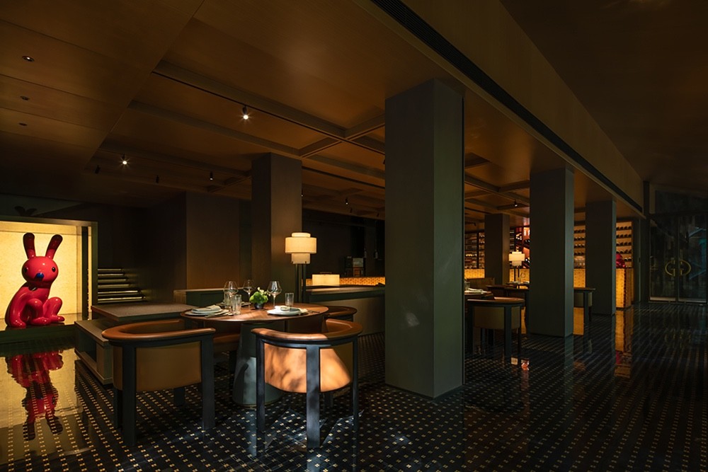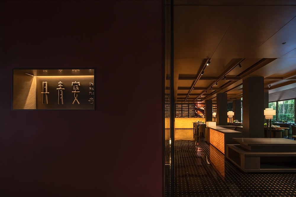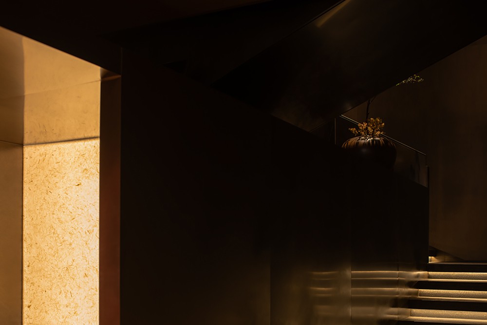 方正的原始格局有了更大的施展空间,游龙走笔,丹砂入墨,从一楼接待处狭长的走廊起笔勾连多处轴线,划分区域,散台,酒吧和茶台,以明晰的开放方式梳理功能区域。