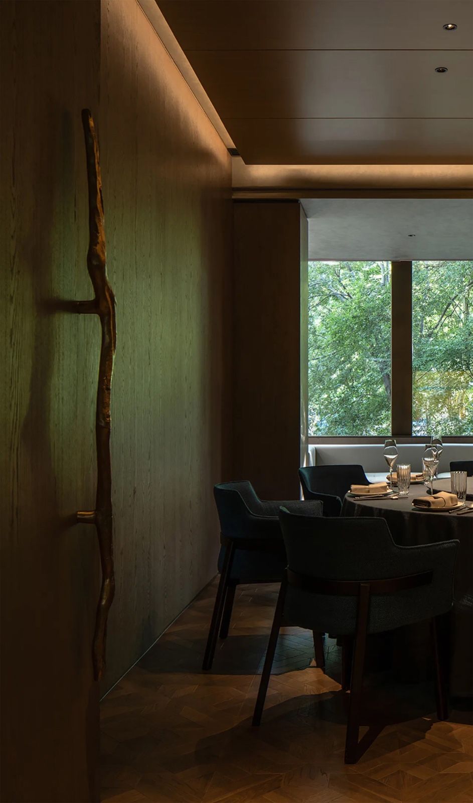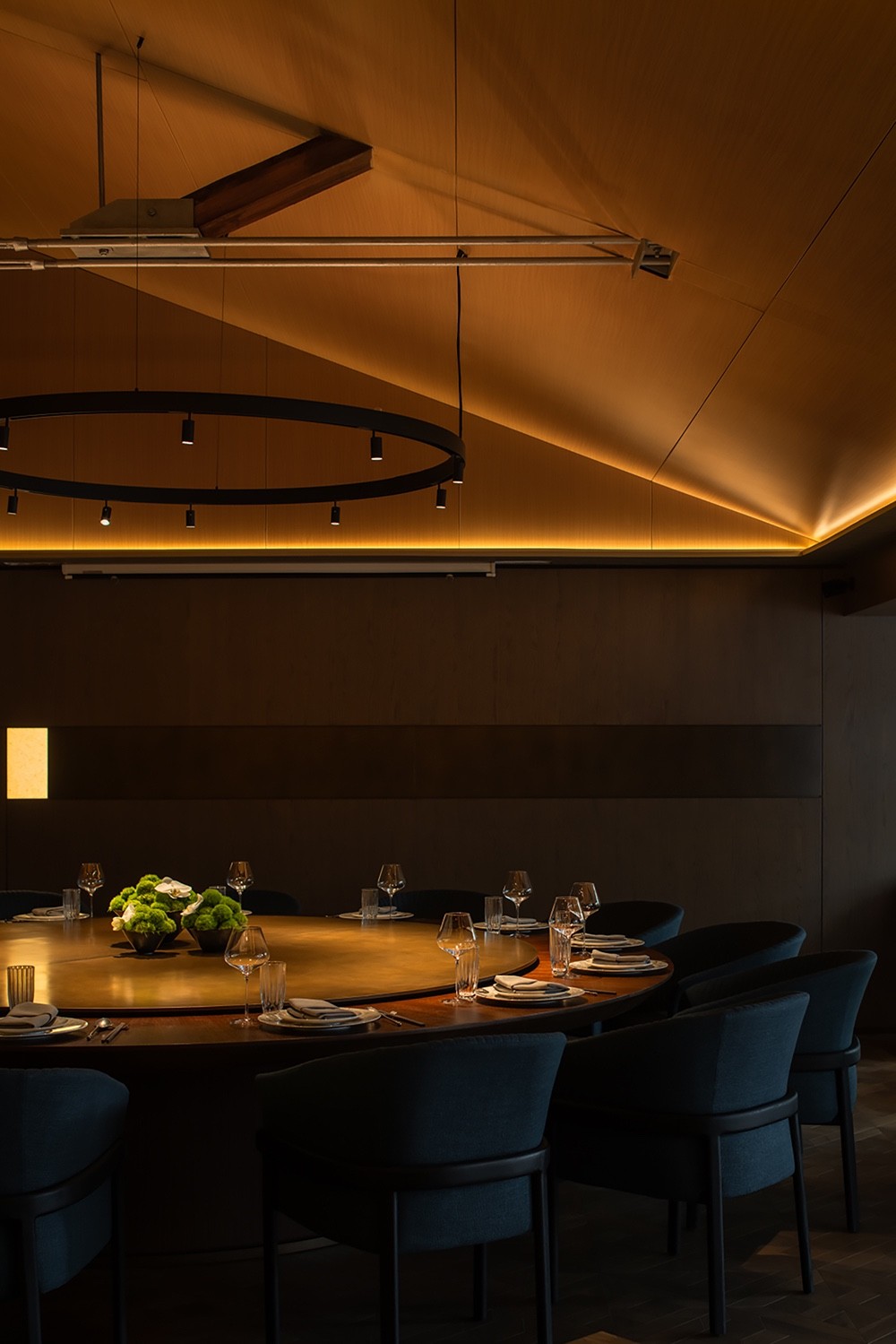 更是深夜静谧灯光中,与三俩友人,在茶酒中驻足,对着江火渔灯,于高处瞭望,豪饮江畔的拳拳之心。木作,石材,软硬相形;金属,布艺,包容并蓄;青红交于此间,讲尽烟火人间,古今江夏风情。
