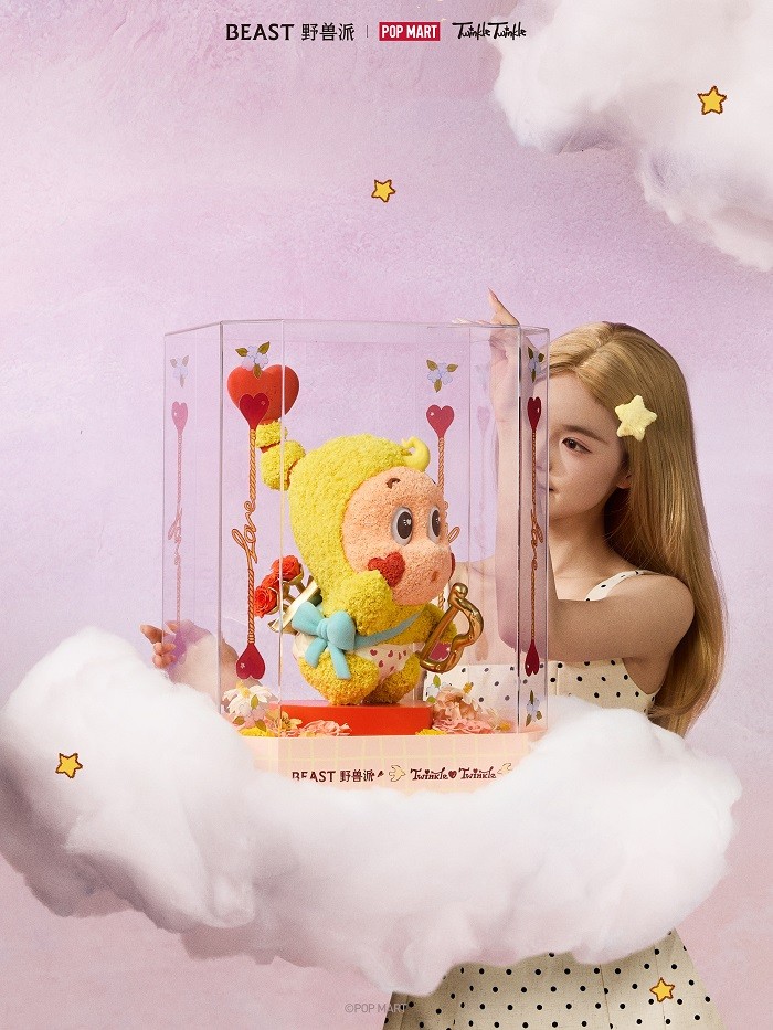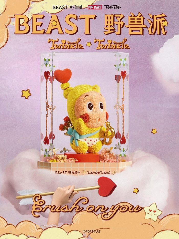 本次联名使用星星人"见习爱神"形象——手持丘比特之箭的星星人化身甜蜜信使,将心动与爱意精准投递。这一充满浪漫寓意的形象贯穿整个系列,让每一份礼物都承载着怦然心动的祝福。