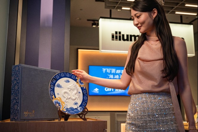 为纪念此次特展,还特别设计了《葡韵腾龙盘》,并委托江西景德镇精工巧匠团队烧制而成。设计灵感源自海上丝绸之路,巧妙融汇中西方文化象征——中国五爪龙与葡式花纹,代表东西地理与文化,海浪与祥云则象征着航海连结。