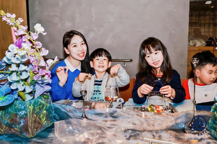 会员家庭专场则更添亲子温情,合影过后,品牌为VIP会员家庭准备了丰富的亲子体验活动。家庭们分为两组,分别参与儿童色彩诊断与微景观手作工坊活动,专业色彩老师为小朋友量身定制色彩搭配方案,现场搭配 Petit Bateau 小帆船服饰,解锁专属时尚风格;微景观手作工坊中,家长与孩子携手创作,打造独属于自己的 “小森林”,在动手体验中感受亲子互动的乐趣。两组家庭还进行活动互换,让每一位孩子都能体验双重乐趣,在轻松愉悦的氛围中度过一段别样的法式下午茶时光。