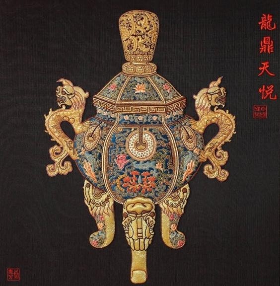 康惠芳潮绣作品《龙鼎天悦》