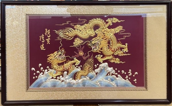 宋忠勉潮绣作品《双龙戏珠》