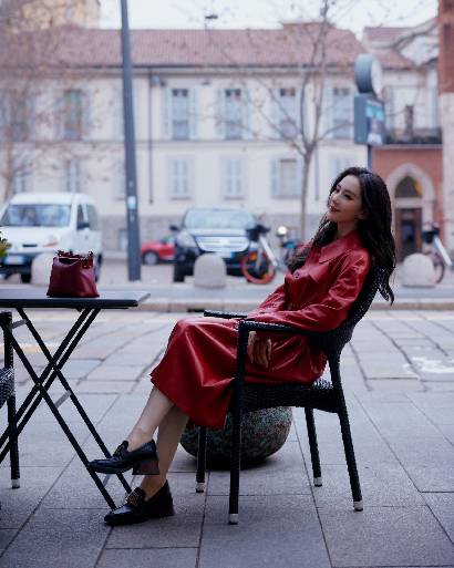 TOD'S大秀现场则用红色皮风衣演绎港风韵味,这次选择黑色Kate乐福鞋与T CASE系列包袋点睛,满身都是藏不住的女明星光芒,姐不愧是姐!