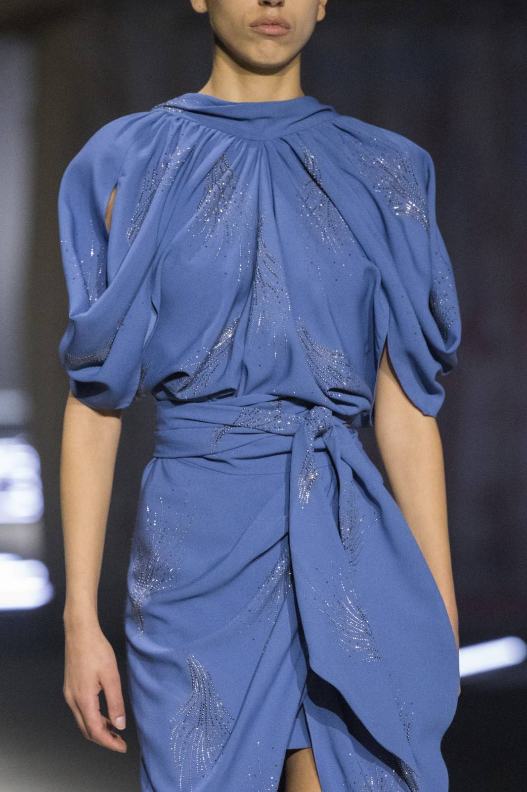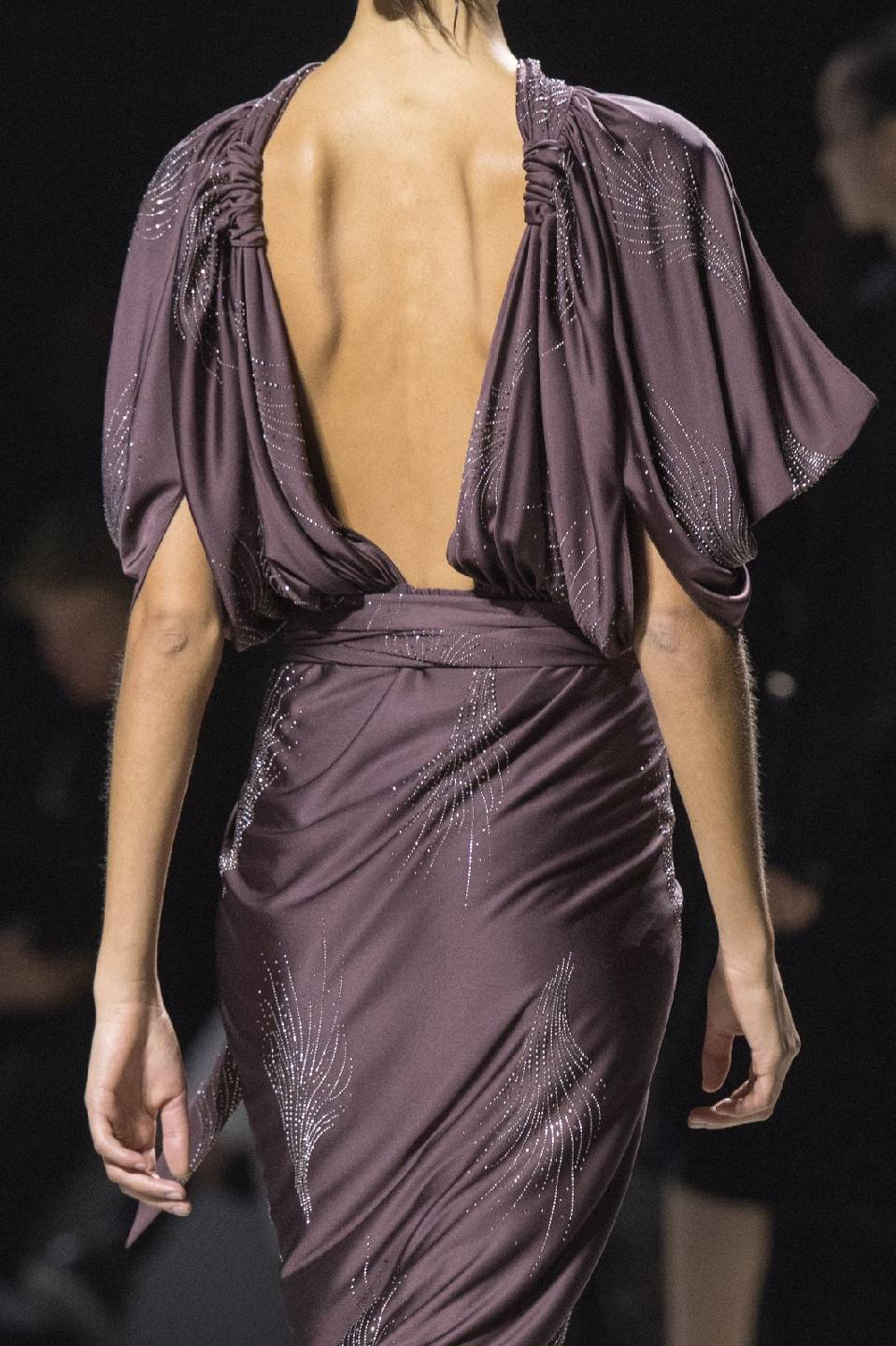 本季着重突出的垫肩版型在流动的裙装亦或是闪耀钻饰的加持下,尽情展示着亦刚亦柔的从容气场。
