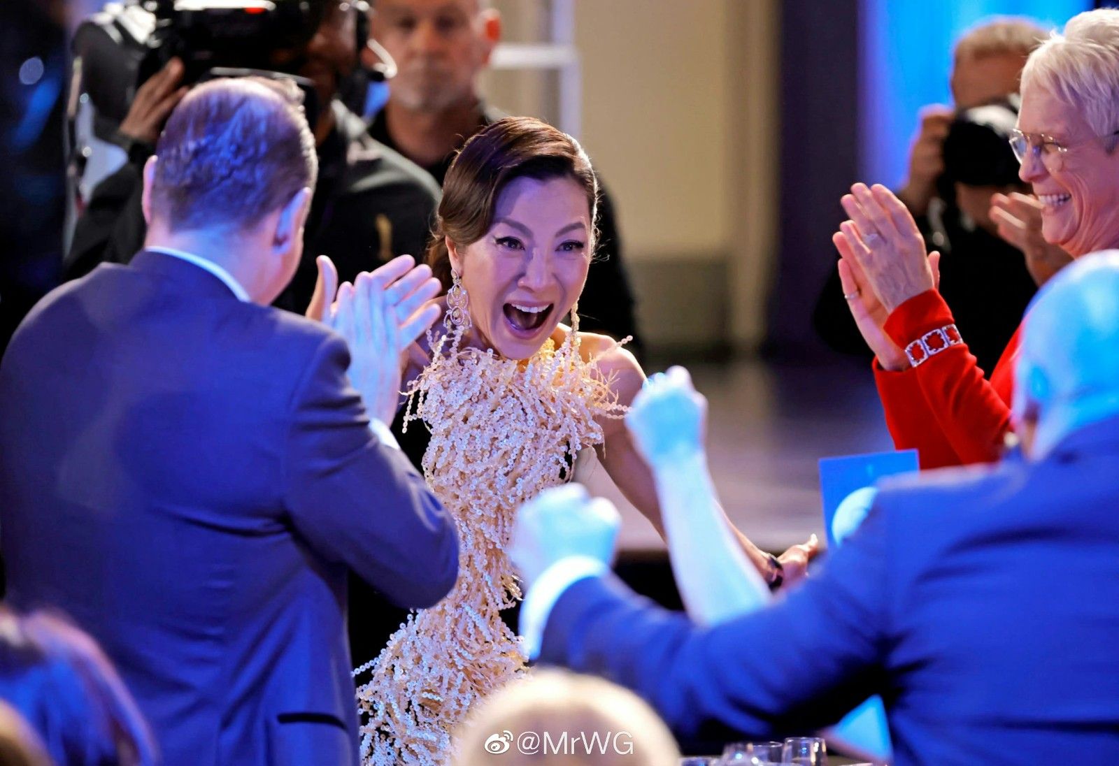 领奖台上的杨紫琼激动得狂飙眼泪,凯特·布兰切特在台下为她感到由衷地开心,或许这就是顶峰相见的快乐吧。