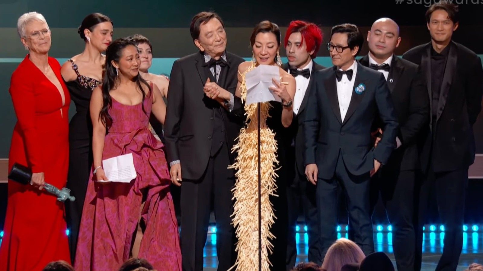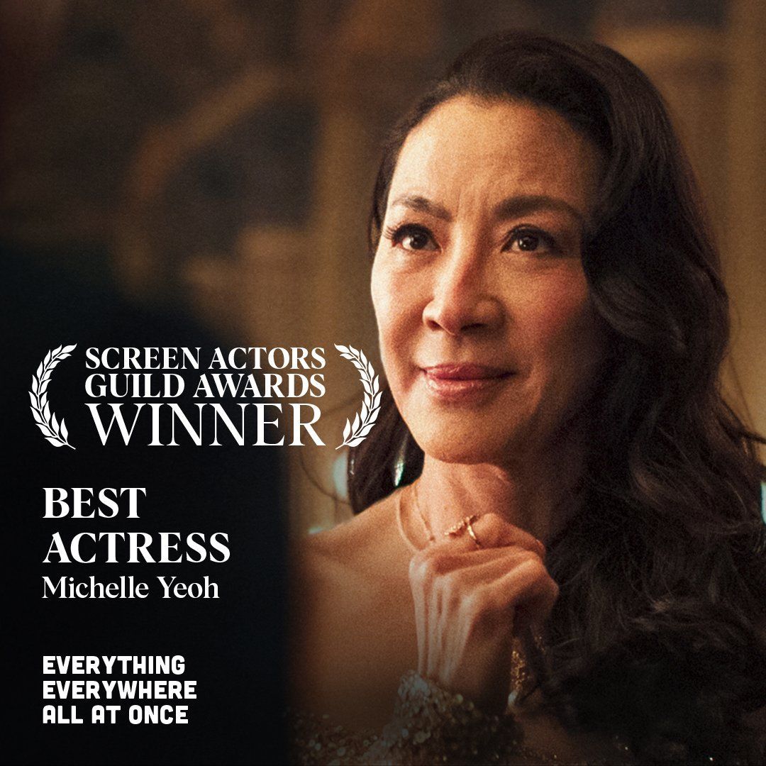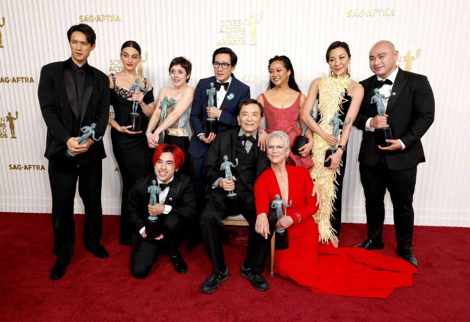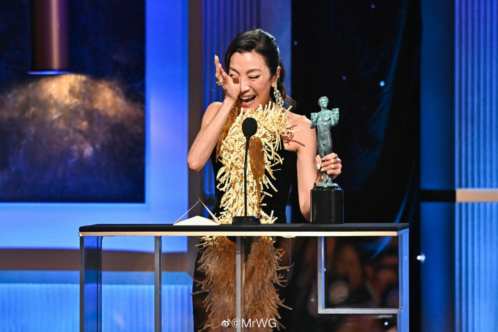 想必不用再过多赘述,杨紫琼凭借《瞬息全宇宙》获得美国演员工会奖。不仅如此,该片还在本次拿下了四大奖项(最佳女主角、最佳男配角、最佳女配角、最佳群戏),也是SAG历史上首部获得3项角色表演奖的电影、获奖数量最高影片。