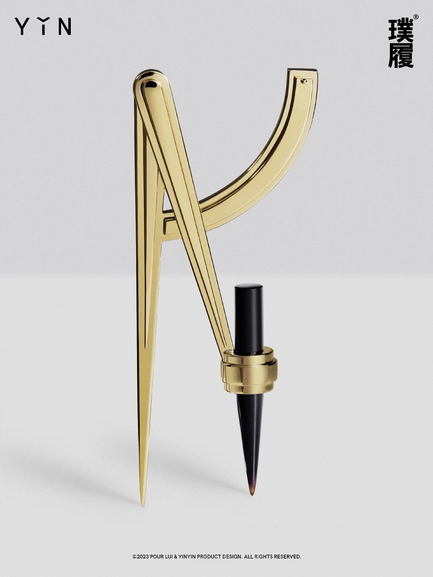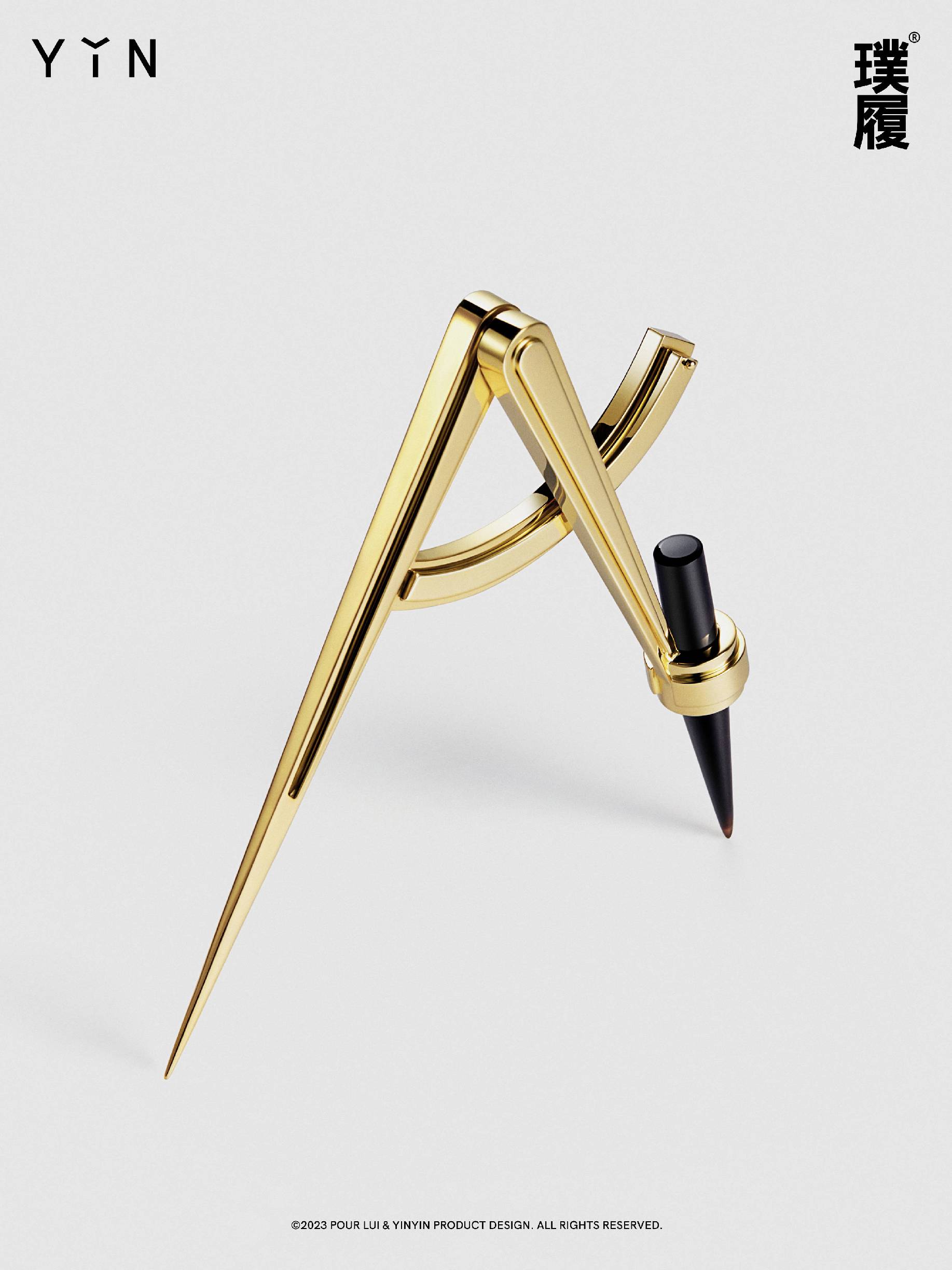 在2023年3月14日,联合中国珠宝品牌YǏN隐,共同开启限定收藏级雕塑预售 ——「黄金圆规」,18K黄金及黑玛瑙承载材质猜想,以「现代数学」为轴,对照最初魏晋时期的「割圆术」,精确度量、方寸变化,求教于一个庞大复杂的科学系统,为当代生活规划有条不紊、循序渐进的确切方式,「数学是人类理解世界的解题集」。