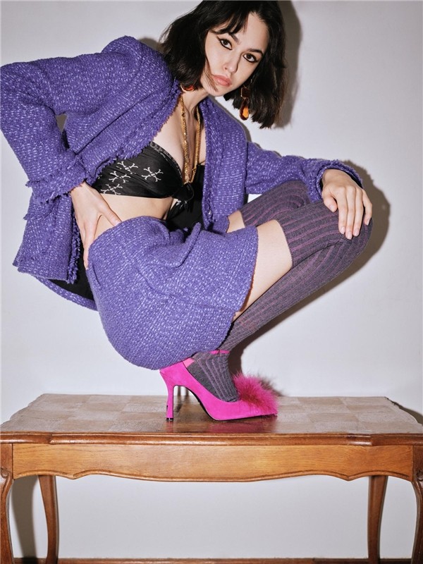 系列中的各式套装在洋红、冷紫、玄黑等鲜明的新色系加持下,在衣袂之间,展现出女性浓淡皆相宜的多面魅力。亮片交织于花呢之间,在面料中如同暗夜中闪耀的点点星光,深沉、神秘而又细腻,内敛地表达着独特的自我意识。