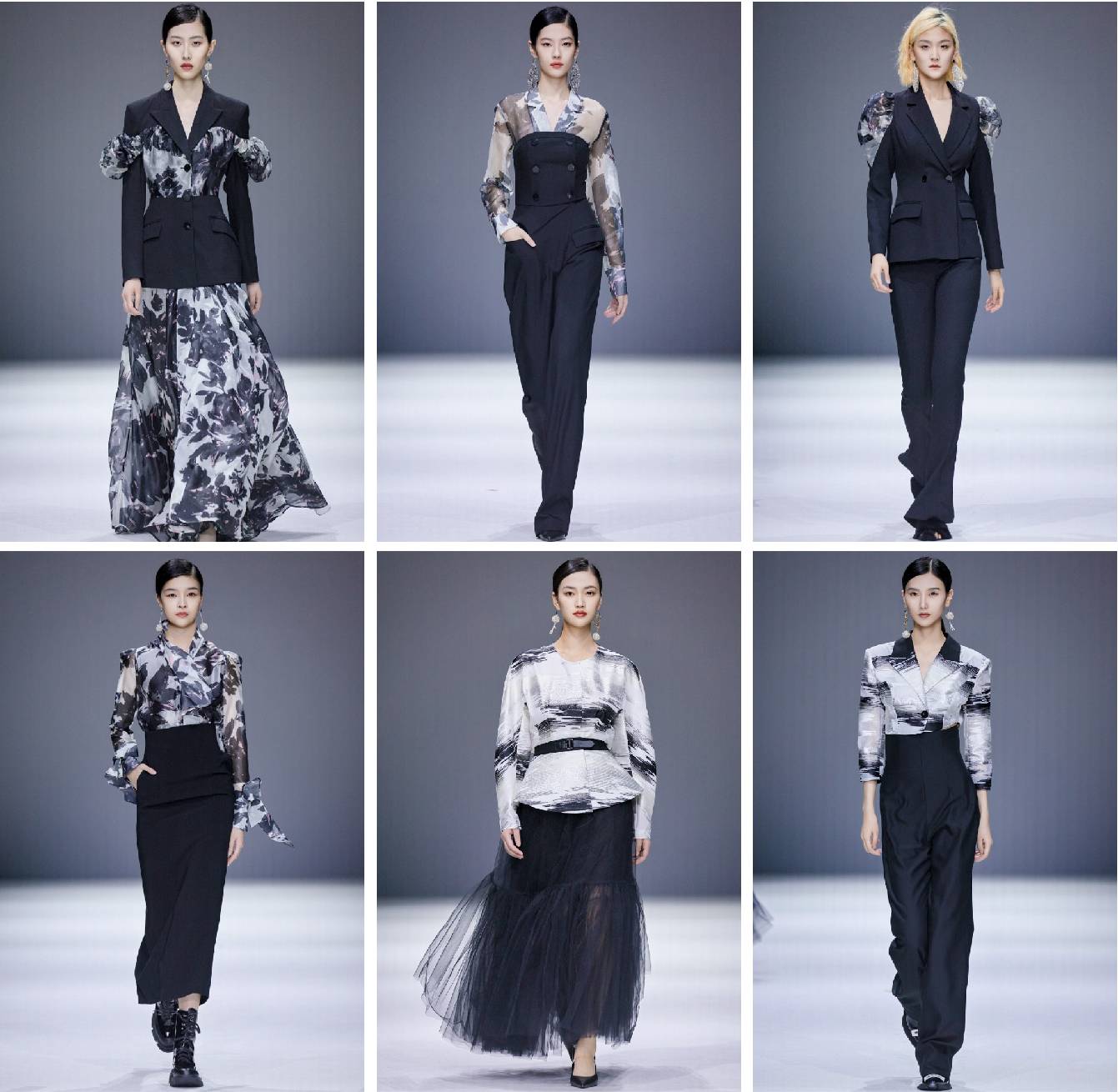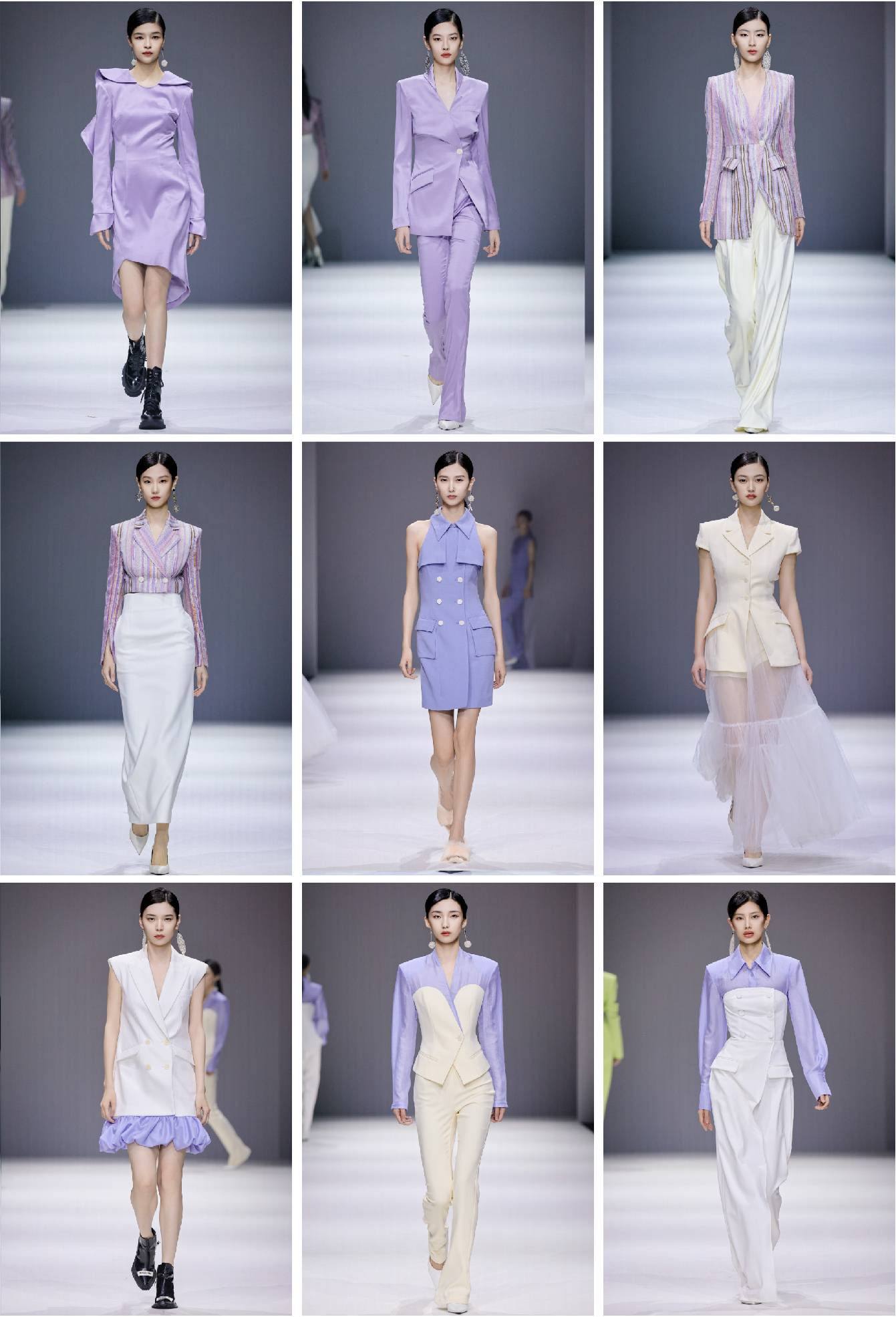整个系列加入了银丝科技感面料,女装摩登缇花面料,欧洲进口丝毛面料,高级成衣面料等