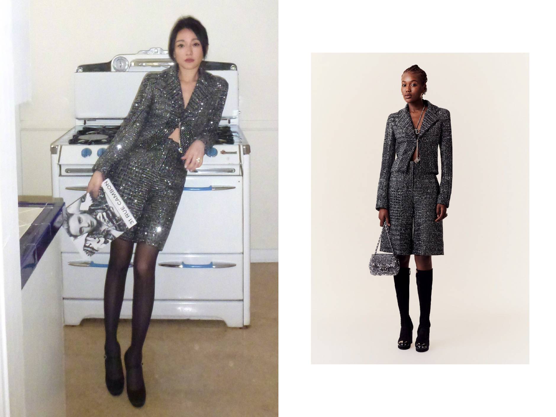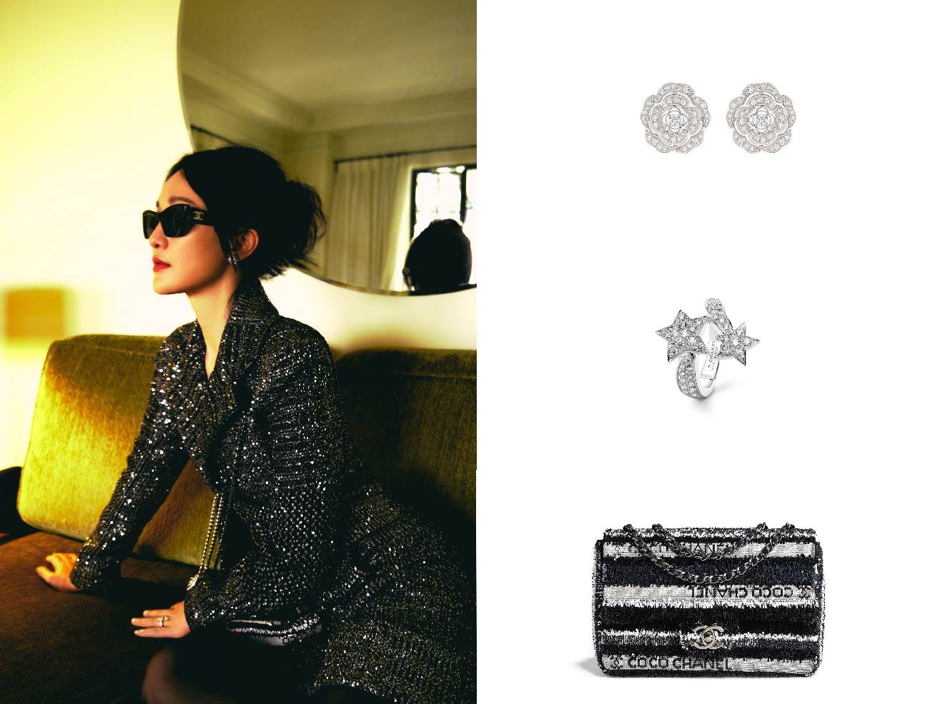 香奈儿品牌形象大使周迅身着CHANEL 2023秋冬预告系列亮片斜纹软呢外套与百慕大短裤,搭配亮片刺绣手袋与高跟鞋,佩戴高级珠宝CAMÉLIA系列耳环及COMÈTE系列戒指,出席CHANEL 2023/24早春度假系列发布会。