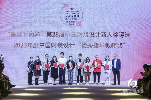 大连工业大学服装学院、江西服装学院、武汉纺织大学服装学院、广西艺术学院、天津工业大学艺术学院、中原工学院服装学院、中国美术学院设计艺术学院、长春工程学院、福州大学厦门工艺美术学院、浙江理工大学服装学院荣获2023年度中国时装设计“育人奖”;