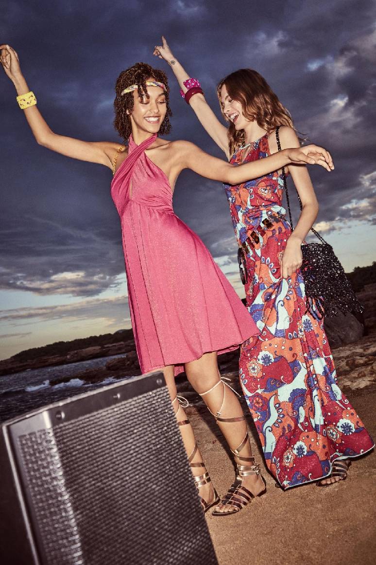暮色降临,晚间的海滩色彩旖旎,人们美妙律动,肆意挥洒青春,沉醉不眠之夜。清爽的蓝绿色出现穿梭在多件单品上,满赋夏日气息。巧妙结合布列塔尼条纹与缎面半裙、连衣裙。此外,百搭抹胸丝巾和平底绑带凉鞋等单品配以活力色调,焕发蓬勃生机,是理想的夏季穿搭单品。