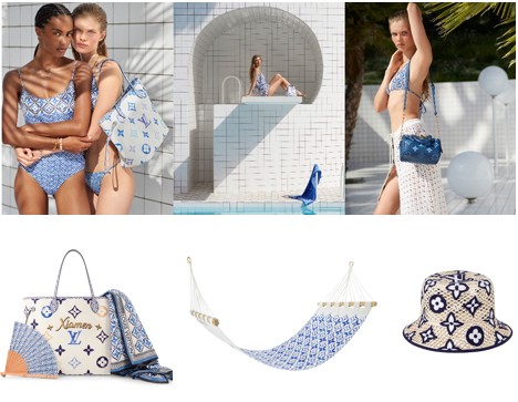 成衣休闲而不失精致,风格百搭且轻便实用,适合旅行时穿着。钩针单品轻盈勾勒曼妙曲线,散发瞩目魅力,针织单品流露闲适气息,与泳装搭配相宜。半身裙、短裤和连衣裙等针织单品呈现多元廓形,质地轻盈,风格柔美,以葡萄牙传统花砖图案诠释Monogram花卉。黑白配色彰显隽永风格和闲雅气质。长袍和披巾是度假必备单品,而外套和其他单品在无惧昼夜温差的同时满足不同场合的着装需求,使本季的穿搭选择更灵活多变。品牌经典Speedy手袋、Keepall手袋、Métis手袋和NéoNoé手袋,缀有大号Monogram花卉图案,与马赛克瓷砖印花饰边互为映衬。奶油色涂层帆布包面上,以蓝色、柔粉色和米色焕新诠释品牌标志性图案。如拉菲草般柔韧的全新面料,由棉布制成,以Monogram刺绣形式呈现于手袋、鞋履和配饰。奢华单品亦饰有夏日元素:Twist手袋采用钩针面料,绽放缤纷花朵图案;Capucines手袋选用舒适藤编和迷人粗花呢材质;Coussin手袋包链上饰有精美编织效果丝巾。LV By The Pool系列鞋履捕捉时尚休闲风格的精髓,令造型至臻至美。LV Isola平地凉极具辨识度,鞋面LV Circle标识搭配鞋底花砖图案,化身全新经典单品。同时,Platform凉鞋和便鞋选用棉布材质和刺绣工艺,搭配便鞋外底。皮革凉鞋或LV Croisière渔夫帽均饰有瞩目刺绣装饰,帽饰展现或经典或创新的风格。引人注目的太阳眼镜以粉蓝当季色调勾勒传统构型。除了轻盈舒适的服饰之外,该系列品类丰富,彰显路易威登生活方式。Monogram印花吊床、折叠椅和沙滩球拍套装为闲暇时光增添乐趣,利摩日陶瓷餐具展现卓绝工艺。LV BY THE POOL系列升华度假时光,提升旅行舒悦体验。该系列目前已于路易威登专卖店、官网和路易威登夏日系列限时空间发售。