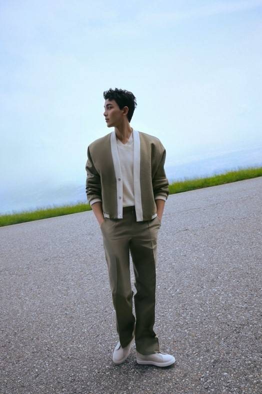 品牌代言人吴磊身着杰尼亚 2024夏季系列及米白色鹿皮TRIPLE STITCH™奢华休闲鞋,
