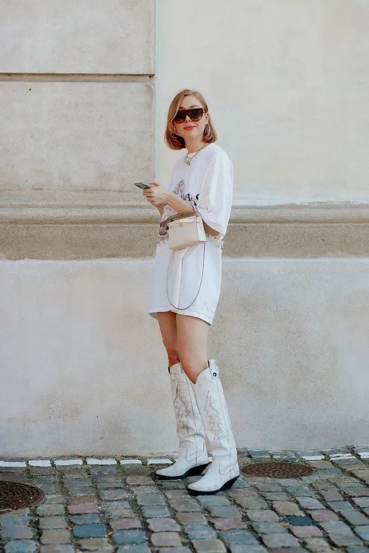如果想在你的腿在整体视觉上显瘦,可以看看这几年在欧美圈大火的牛仔靴。