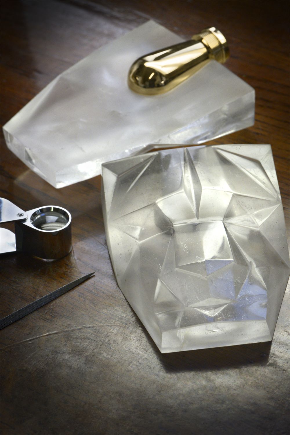 前所未有的香水瓶设计使用整块玻璃由内进行雕刻,以极具棱角的下颌与眉眼为重点,立体的线条与刻面刻画出栩栩如生的豹首形象,这一备受瞩目的设计同时呼应非同一般的嗅觉体验。