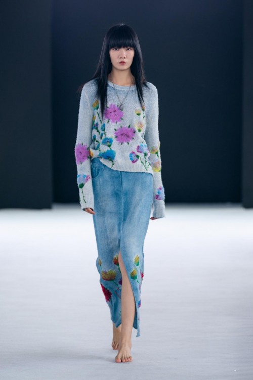 美好的大自然成为了本季的灵感,犹如薰衣草、玫瑰般柔和的色调之外,亦有春日更具饱和度的“多巴胺色彩“出现,与羊绒、丝绒混纺、棉麻混纺、亚麻、棉质等多样织物结合,营造出属于春日的轻盈感。优越质感面料制成的镂空毛衣, 轻质开衫、连衣裙、蕾丝裙装塑造出迎身处英式花园般的浪漫形象。同时,带有鲜花刺绣的浪漫夹克、链条细节和极具朋克风格的多样叠穿也造就了更加不羁潇洒的英伦风貌。