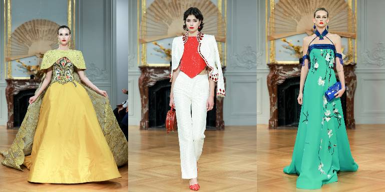 巴黎中国文化中心主体建筑是19世纪的孟德斯鸠公馆。当晚,“恭王府服饰秀”作为巴黎中国文化中心2023中法时装周开幕大秀,展出国际著名服装设计师劳伦斯·许创作的恭王府系列高定服装,提取恭王府古建园林、建筑彩画、天下第一福等传统文化元素,将精致的云锦面料与苗绣、苏绣等技法相结合,采用西方立体裁剪,在穿针引线中展现巧夺天工的传统技艺,让世界看见中国传统“精雅生活”。