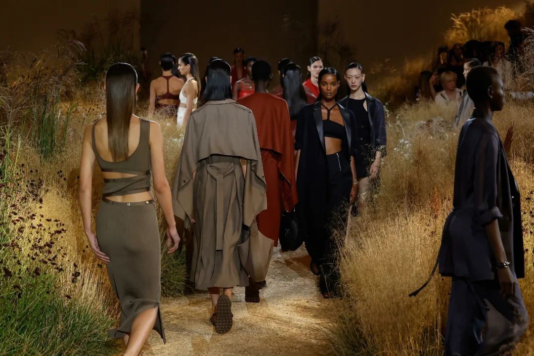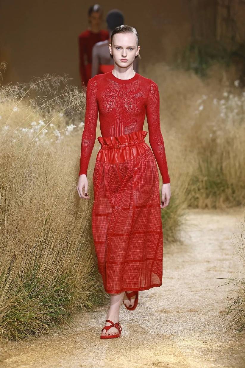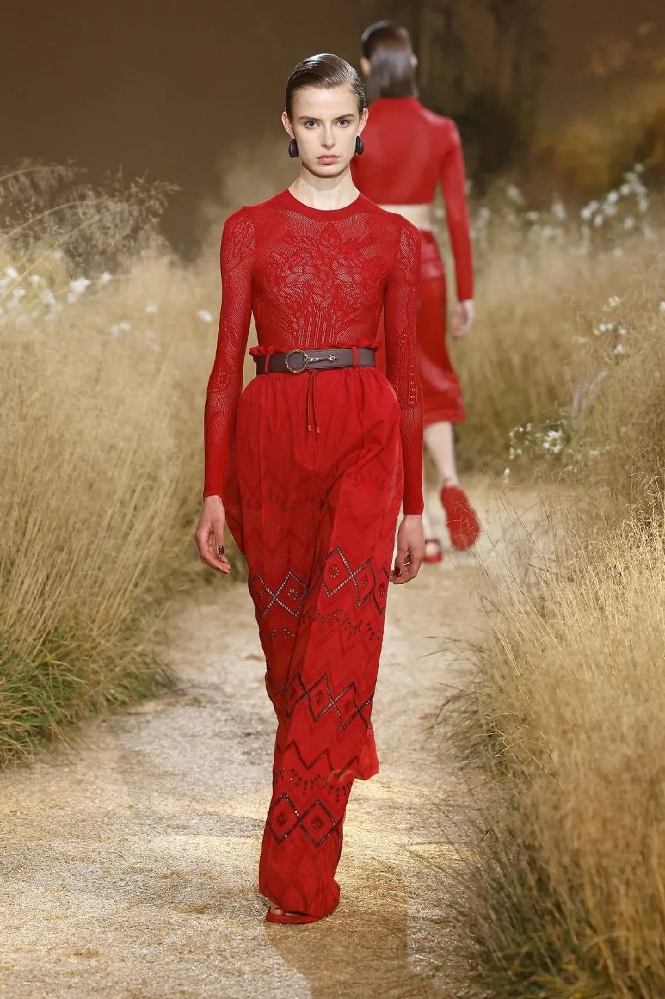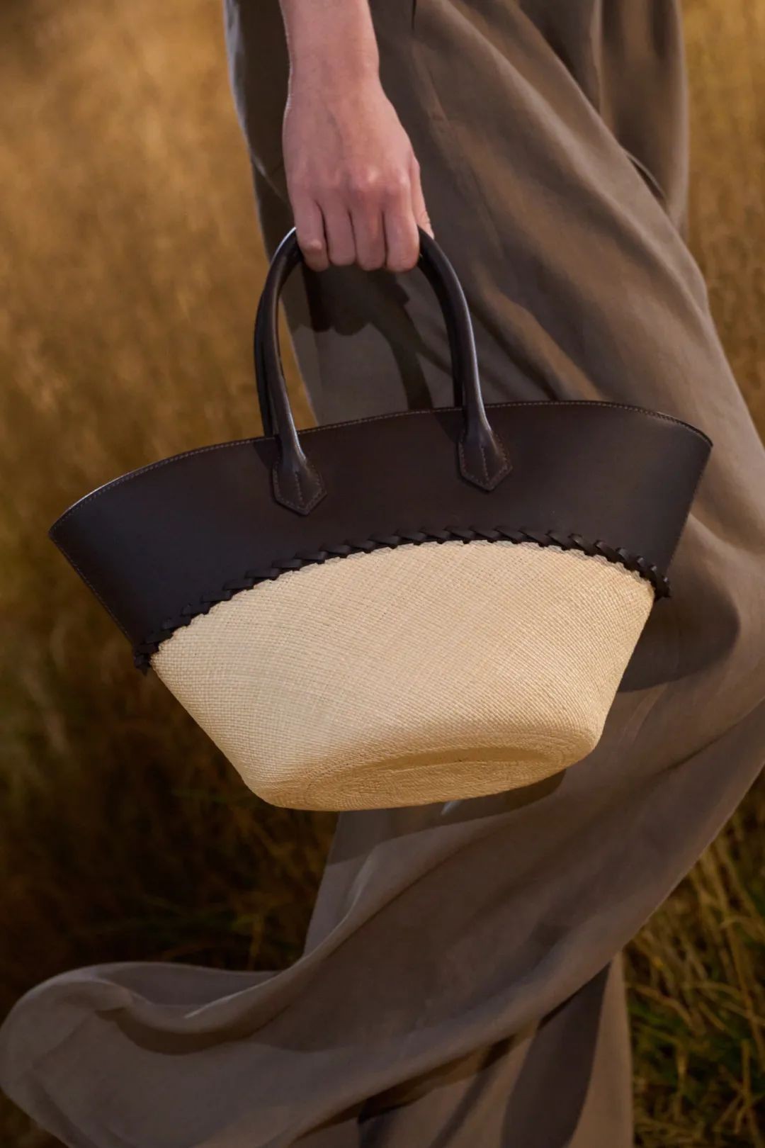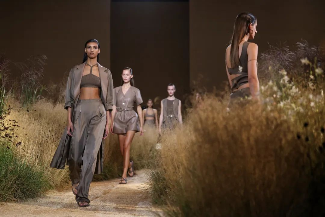 呼吸着田间自由的风,感受盈盈的春光倾撒在草叶尖,聆听大自然在春天的呓语,追寻重拾自我的本心和初意,仔细听,婉转悠扬的吟诵慢慢传来,这是HERMÈS在2024春夏女装秀场上带给春天的一首田园抒情诗。HERMÈS创意总监Nadège Vanhee-Cybulski在本季用轻盈、开放、自由、笃定四个词语来描绘春天的时装,将织物与色度、弧线与色彩的极致魅力融合进欢愉自然的面料与设计之中,大胆挑战着装组合的观感与法则,不仅将服装视作人的第二层肌肤,也借助它们柔软细腻、展示身形的个性为人们带来全新的穿着体验。细腻柔软的皮革单品是 Hermès 秀场上最值得期待的部分,本季也不例外。皮革光滑细腻的调性好像能让所有人预见极度舒适的穿着感受,质感上乘的面料触感,流畅立体的剪裁与廓形,再结合酒红色、橄榄棕、灰白色、巧克力色等从自然界撷取的色调和配色灵感,不仅造就了低调沉稳、奢华有度的皮革大衣、马甲,带给人温暖如春的视觉体验,也让皮革连衣裙在摇曳的身姿中诠释出复古摩登的味道。用作点缀和搭配材料的皮革也同样发挥出了淋漓尽致的美感,作为腰间装饰与Tattersall格纹印花套装进行搭配,完全成就了一场知性优雅与复古个性相配合的完美演出;与针织和真丝上装进行协调,则为我们呈现出别开生面的混搭和碰撞,带给皮革面料一场展示自我的全新变革。罗纹的肌理和立体感格外突出,本身柔软亲肤的面料质感也与身体达成极高的贴合度,加上各种版型和剪裁线条的变化,挂脖短吊带浪漫随性、刻画出春夏季节的明媚质感,工期背心颇具中性风格,配合沉稳经典的色系是怎么搭配都难以出错的选择,Polo领拉链针织衫和背心则赋予了罗纹针织面料更加休闲随性的表达,仔细观察也会发现,罗纹针织背心的底部都用了皮质面料做搭配,不仅增添了层次感和丰富度,也将简约大气的风格之中注入几分休闲的味道。在自然田园里迈开随性步伐的HERMÈS,怎么能缺少对慵懒田园风格的极力诠释?皮质吊带和连衣裙做了菱形格纹的镂空,让原本些许厚重的面料变得更加的轻盈和自由的视觉效果,充满田园自然风情的同时也与春夏季节的气息完美适配;另一边,秀场上的棉麻面料也是营造慵懒感和田园风的不二答案,棉麻质感舒适透气,自带的肌理感搭配细小的格纹图案,连衣裙、半裙、套装的多种组合,倾力让春日田园气息丰盈了整个秀场,关注细节,在棉麻半裙和裤脚上摇曳起舞的是英格兰传统印花,也是把田园感和浪漫风浓度提高的设计巧思。还有薄纱质地的波浪纹连衣裙,干净优雅的纯白色,轻盈曼妙的身材若隐若现,慵懒度假风格之中又极具浪漫主义色彩。不难发现,整个秀场上除了有十足的田园气息和自然风情,那种不张扬也不内敛的奢华就像空气一般,裹挟着秀场的一草一木,却让人觉得它生来就是融于这里的一部分。HERMÈS利用质感极佳的羊绒和真丝面料打造而成的大衣和外套,就是静奢之感的最佳展现。羊绒温暖而有厚度,真丝顺滑飘逸,一种重工与飘逸相辅相成的效果、一种与运动装混搭而成的意趣格调,随性天成,个性由心,带给我们不落俗套的匠心工艺和突破常规的大胆搭配,让经典和创造力共襄盛举。作为爱马仕的经典之作的Birkin手袋,一直以来都是众多女性的梦想之物。而在这一季的设计中,大地棕色的Birkin包袋更是以全新的姿态亮相,让人眼前一亮。它的出现,仿佛为整个秀场增添了一抹浓郁的自然气息,让人不禁为之倾倒。这一次,设计师们更是将它的尺寸缩小,打造出了更为精致可爱的mini款。Panier d’été 以全新的面貌亮相,采用更为轻便的材质,搭配明亮的色彩和精美的走线,营造出一种轻松愉悦的氛围,仿佛带领人们重回美好的夏日时光。Pochette d’été设计小巧玲珑,酒红色的配色更是显得高贵典雅。无论是出席正式场合还是日常出行,它都能成为你的最佳伴侣,让你在人群中脱颖而出。除了各种精美的包袋之外,本季的爱马仕还为我们带来了一款平底绑带凉鞋。无论是搭配裙装还是裤装,都能展现出不同的魅力。回看这一季的HERMÈS,自然春意疯狂生长,我们也在生长的间隙里,看到轻盈充沛、自由无拘的时装力量。