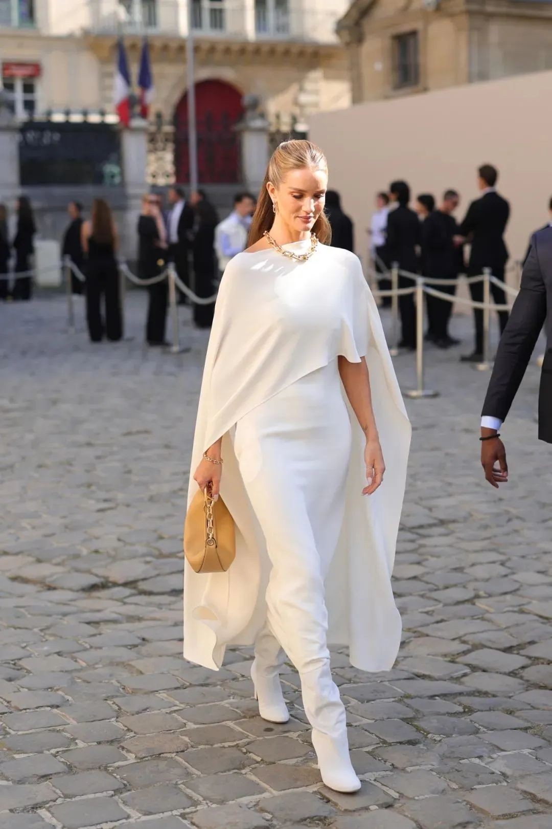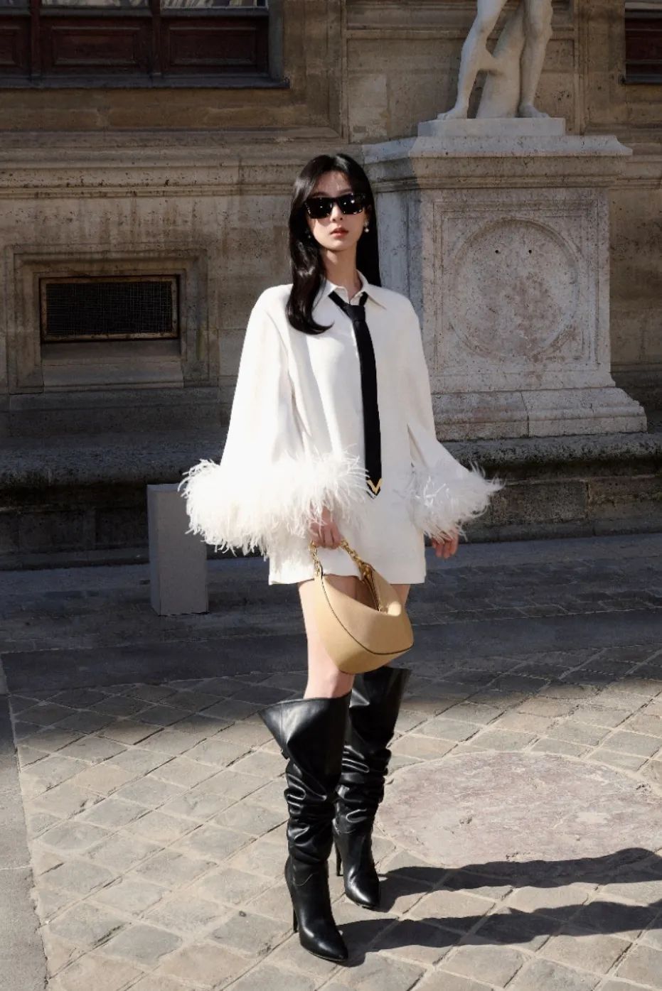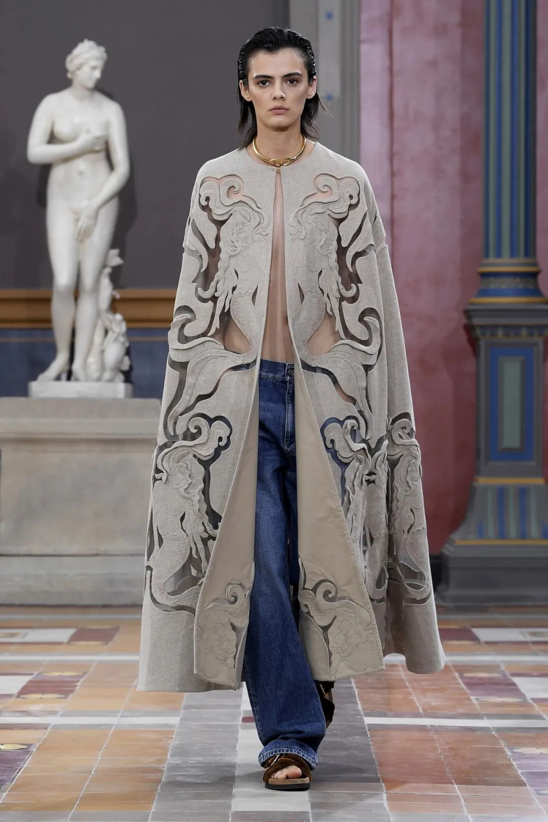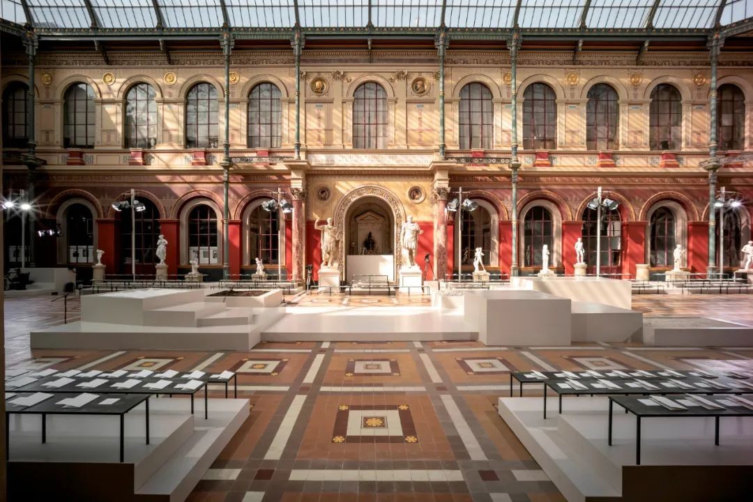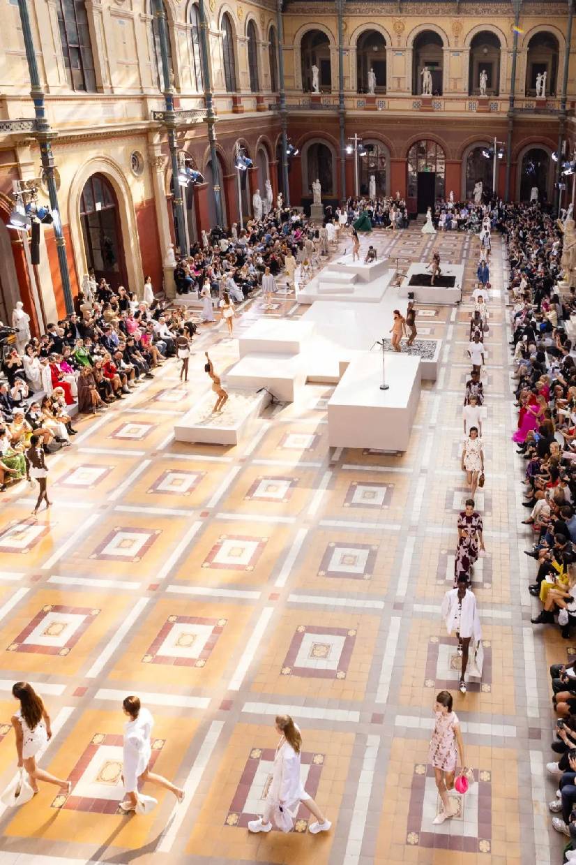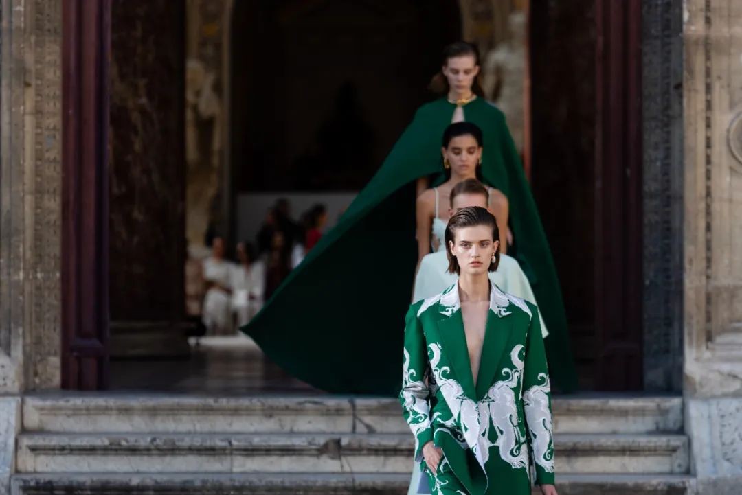 我们以肉身搭建的美,便是如学徒一般,谦卑地认知、自由地表达、刻苦地修行。它是古希腊先哲苏格拉底口中的“Academy”,也是法语中的“L'École”,而具体指代到本季Valentino华伦天奴2024春夏L'École系列,便是选择了品牌创始人 Valentino Garavani 先生幼年曾经就读的巴黎艺术学校(École des Beaux-Arts)作为本季秀场的选址,既是“学业有成”也是“荣归故里”。