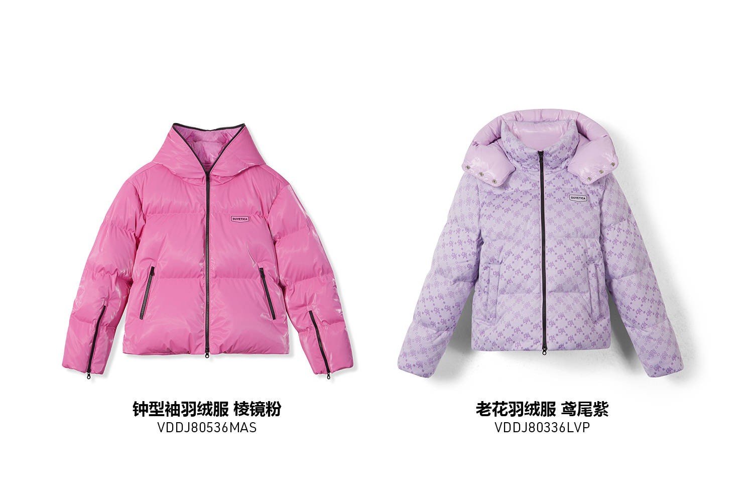 DUVETICA棱镜粉钟型袖羽绒服采用特殊的光泽面料,以精湛的工艺及纯粹的呈现方式,展现别致的简约美学;鸢尾紫老花羽绒服糅合了DUVETICA经典老花图案于其中,以DUVETICA的专属设计语言讲述冬日绮遇。两款单品都以跳脱张扬的魅力色彩,生动演绎热力冬日的畅快与肆意山海的浪漫,在凛冽冬日依旧能延续热情活力的多巴胺组合,解锁更多城市运动穿搭灵感。