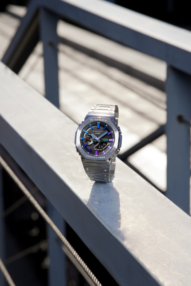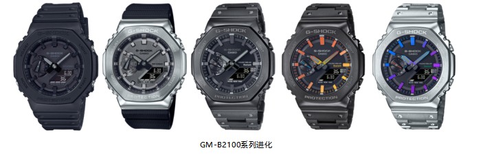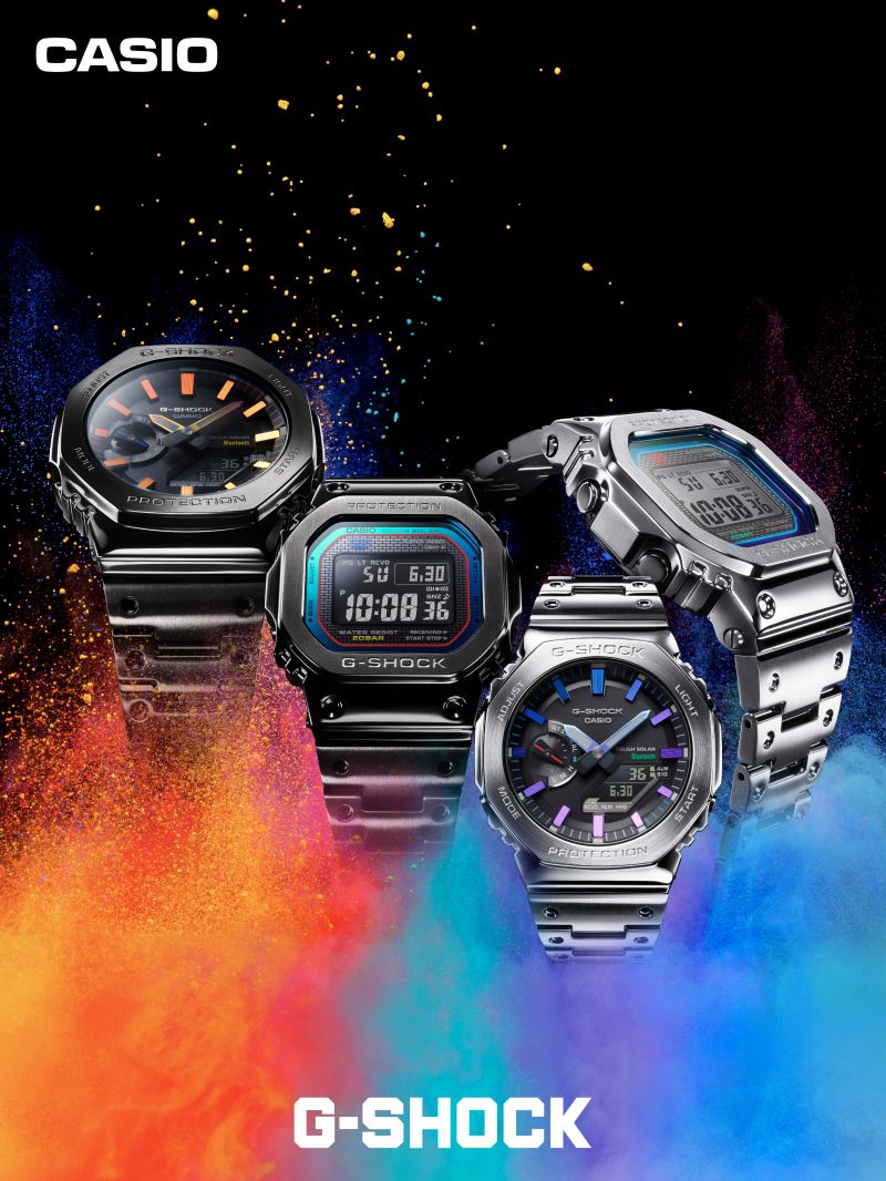 在G-SHOCK诞生的40年里,品牌打造了无数经典系列。每一款腕间力作的诞生,都见证着品牌坚韧不止的精神。历经时间磨砺,G-SHOCK坚韧的棱角不仅未被磨损掉一分一毫,而且还不断进化、持续创造新的坚韧传奇。此次,G-SHOCK在金属美学与先锋格调之间坚韧再进化,以以突破常规的渐变色为方块造型的B5000系列与八角造型的2100系列潮流焕新,呈现经典设计的多元色彩表达,最终以G-SHOCK「炫彩渐变」系列四款腕表唤醒高阶时尚嗅觉,展露硬核棱角态度。