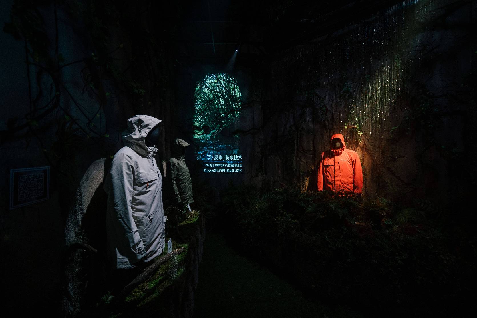 消费者可在两大模拟户外环境中进行“实测体验”:步入瀑布岩洞内部,伴随一缕阳光感知虫鸣鸟叫及特定地貌带来的高湿环境,发现Omni-Tech 奥米·防水技术,享受全感官户外奇妙之旅;置身极度冰窟严寒空间,试穿Transit穿行系列三合一冲锋衣,体验品牌Omni-Heat Infinity奥米·金点热能反射技术带来的温暖舒适。