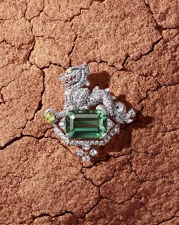 这款作品源自于宝石雕刻工匠的大胆创意和过人才华,他们将古老的化石打造为拥有独特美感的珠宝杰作,为猎豹增添全新魅力。