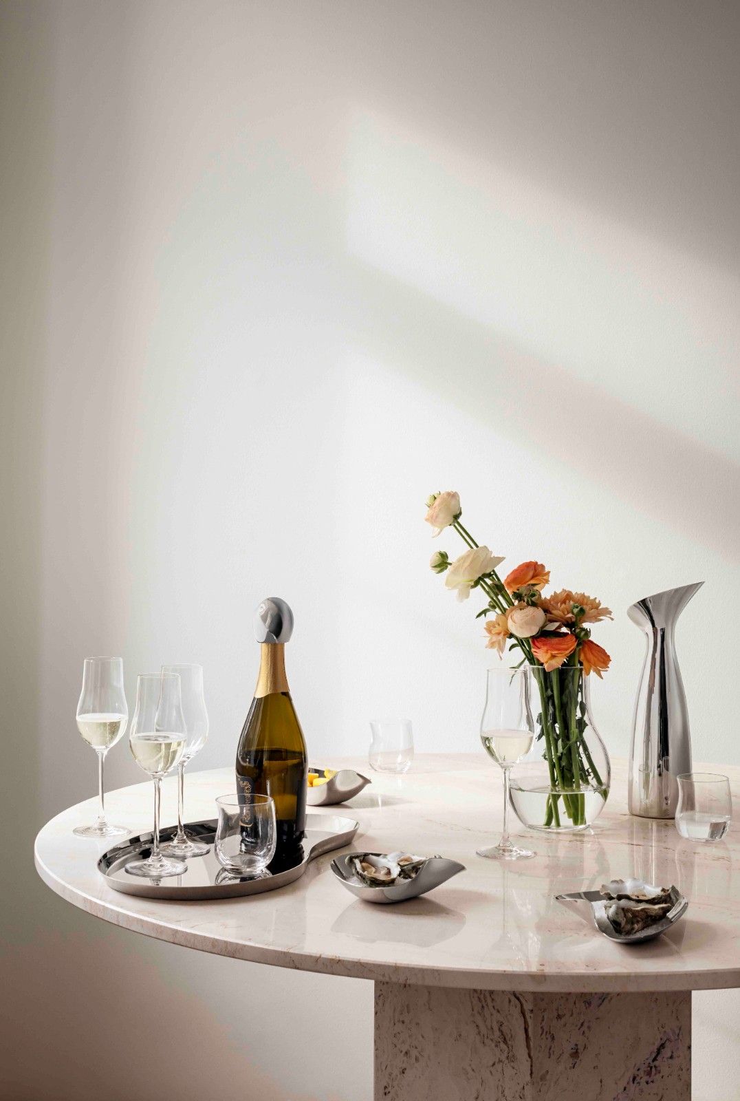 Indulgence系列推新拓展出香槟塞、托盘、碗及冷水壶,每一件产品都使其富有强烈的雕塑感和流动感,流畅线条和大胆设计使产品充满了灵动与生命力,相互之间的搭配组合,为日常生活添加了一丝雅致与精致。