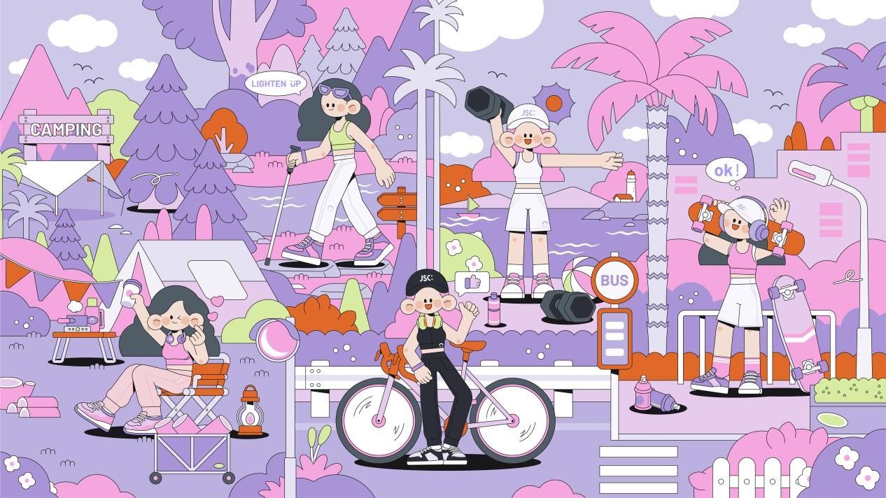 在2023年,JSC开启了丰富多彩的异业联动,为推出“小自由系列运动内衣”,品牌首次启用TVC大片拍摄,邀请了60岁时尚博主@马姐、冥想女孩@汪静lvy、百变妈妈@牙签阿姨等不同年龄、领域、风格的女性来分析属于自己的小自由。为推出主打轻盈感的“小轻松运动裤”,则联合青年插画师@奎恩kk,以热爱户外运动博主@HEIHEI为原型,设计了“轻松一下”系列插画,以明快童趣的画风传递小轻松的理念;品牌在氧气音乐节十周年和JSC小开心系列发售之际,作为氧气音乐节开启了一场“有氧就开心”的创意联动,现场还设置了“涂个开心”创作区,与甜酷女孩分享开心。品牌通过持续进行创意营销,不断输出正能量和积极情感,深度触达目标受众,为热爱运动、时尚的人群构建兴趣交流圈,并鼓励更多人接触运动了解时尚。