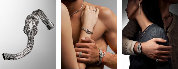 Love Knot寓意真挚情谊与爱意连结,灵感源自品牌标志性的编织链条,融汇巴厘岛代代相传的编织技艺与精髓。Love Knot系列以独特工艺技法将链条相互交织,独特纹理宛若两颗心彼此辉映;独特链结承载着爱的誓言,阐释了人与人之间永恒的纽带与坚定的承诺,构筑出独一无二的品牌符号。在这个假日,John Hardy赋予Love Knot系列更多元的灵感,不仅将链结标志巧妙延伸至更多单品,涵盖织物手链和流苏耳环,还将链结标志扩展至多种尺寸,完美结合卓越工匠的编织技艺与现代设计的独到创新。每一根链条仿佛是真挚情感的象征,流畅的线条造型巧妙地将彼此紧密相连,以微妙的隐喻呈现出心意与情感的交融,诠释了Love Knot系列中爱的意蕴与纽带。