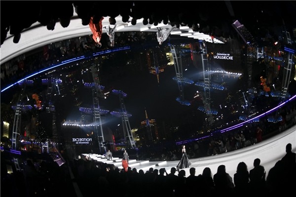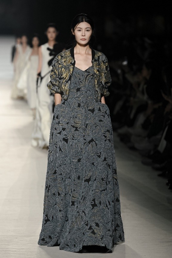 互相呼应的空间场景,过去与当下通过屏幕开启对话,物理现实与虚拟现实并存。随着秀场虚实光影的视角转换,在服装与人文的联袂共生、起承转合之间,观者得以超越表象洞见生命智慧,体会入定与出定的平衡妙境。