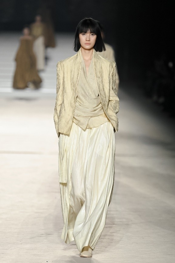 作为东方美学的当代发现者,「例外」从源远流长的中国文化中汲取灵感,用独树一帜的艺术形式将传统东方美学融入现代时尚设计。「大观·定觉」系列即从宋代定窑与千年缭绫的精神延伸,传统与新生巧妙糅合,通过精湛的原材料、工艺与剪裁,将富有生命力、文化力的东方美学融入现代生活方式,为现代女性创造身心合一的体验。