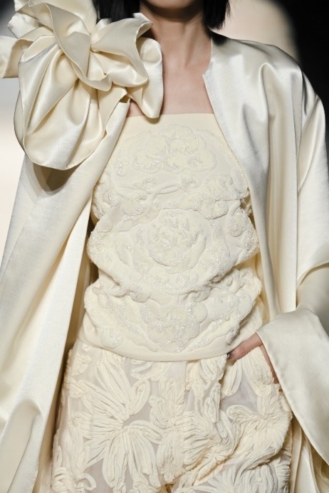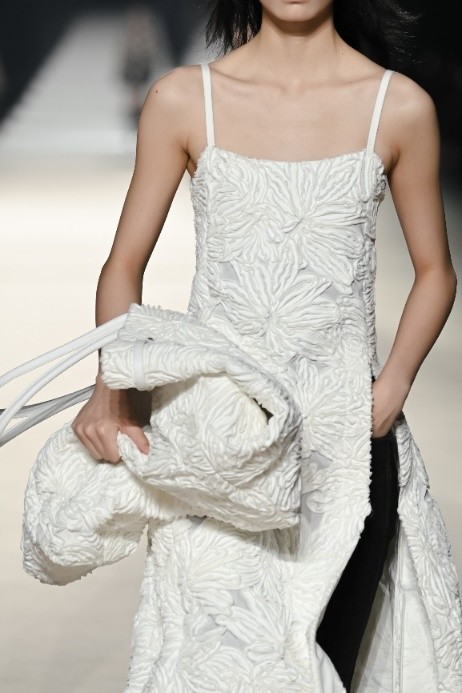 缭绫、虫吟丝麻、祉柔提花,以及镜双提花、山吟提花、频郁绡、苏沐丝毛、缦泽绡、之江缎等珍贵面料,将与生俱来的浪漫、诗意、人文特性与身体衔接,自带风骨。恰如服装的剪影或记忆,从传统工艺和中国古文化中汲取精华,结合现代独立女性生活方式,相得益彰,构造新装。
