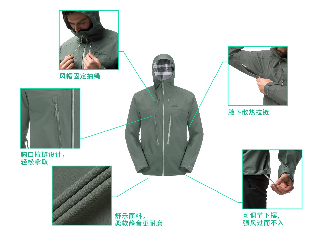 自然之力,行路无惧:搭载TEXAPORE ECOSPHERE回收再生防水透气薄膜,全衣贯彻环保理念,同样应对徒步中的骤变天气
