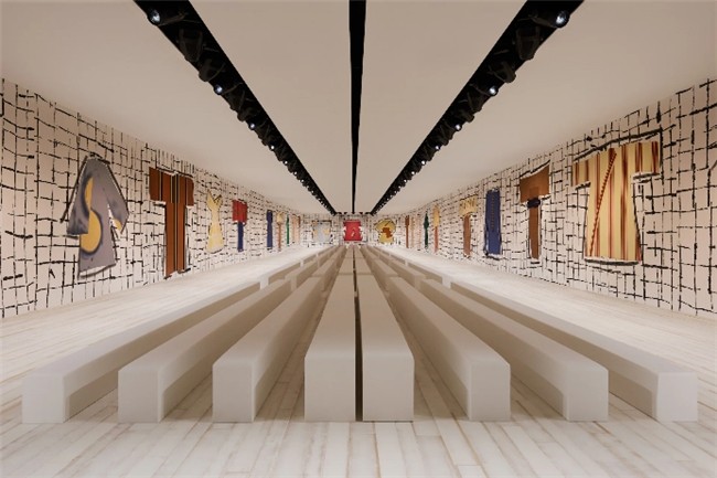 艺术家 ISABELLA DUCROT 为选址于罗丹美术馆(RODIN MUSEUM)花园的迪奥二零二四春夏高级订制系列发布秀,倾情打造秀场装置——“伟大光韵”(BIG AURA)。该艺术装置 由二十三件高达五米的超大尺寸礼服,沿不规则黑色线条错落排列而成,宛若纵横交织的经纬纱线。这些礼服与 ISABELLA DUCROT 的艺术研究对象——奥斯曼苏丹的服饰相互呼应。在艺术家的创作中,服装从具象物件化为抽象符号,指向超越身体的力量。