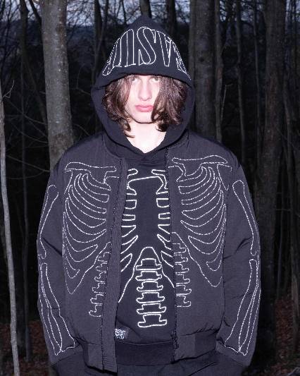 该限定系列包括外套、卫衣、卫裤及T恤等单品,并在以往产品基础上进行了升级。其中,黑色夹克的样式特立独行,设计有人体骨骼结构刺绣图案,同款刺绣还运用于系列黑色卫衣,两款单品异曲同工,凸显Cult 美学。另一款卫衣则带有断臂维纳斯雕像与花卉图形。该系列卫衣均由100%优质棉制成,采用多种技术细节处理以增加舒适感。另外,此次合作还推出Logo卫裤和雕像&花卉图形T恤,可供穿着者选择。