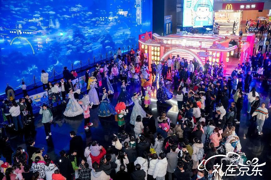 在”心意龙年 礼在京东”的春节集市里,火红的氛围,璀璨的星夜,人们摩肩接踵,流连忘返在每一个摊位,唐诗里“夜市千灯照碧云”所描绘的“繁华似锦”照进了现实。