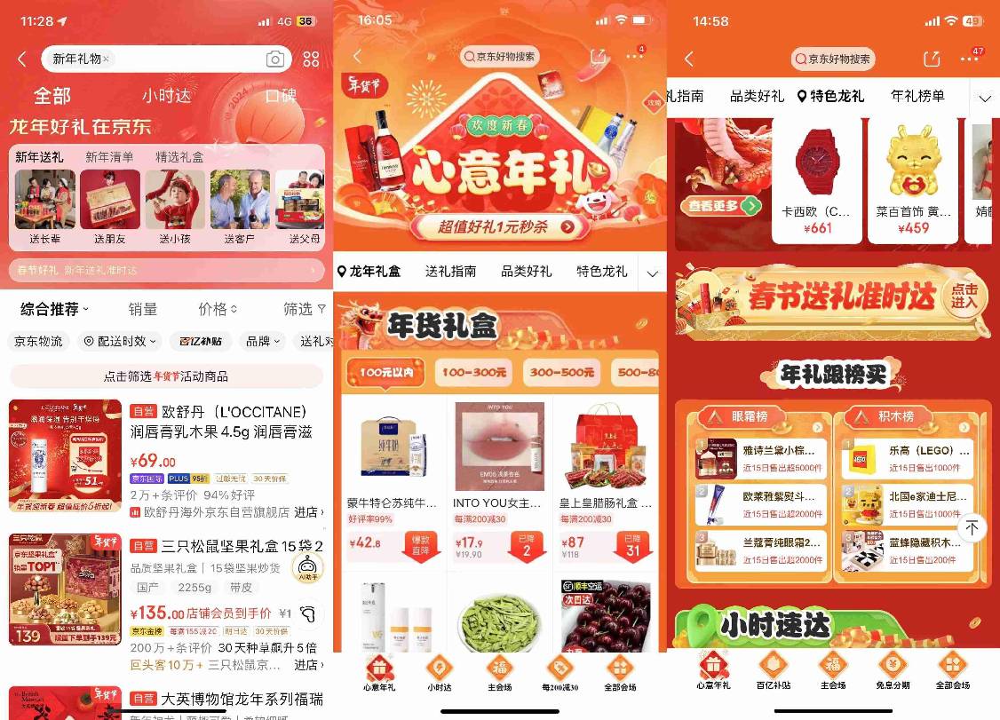 在2024农历新年即将到来之际,京东礼品年货节引爆了线上年货消费市场,带动了线下消费浪潮。线上线下联动,集结礼品好物,助力每个家庭的团圆时刻,愿大家的生活“龙腾虎跃”,“龙凤呈祥”。买新年礼物就到京东,春节期间不打烊,用心送出好礼,让爱更有温度,将浓浓年味儿带回家。