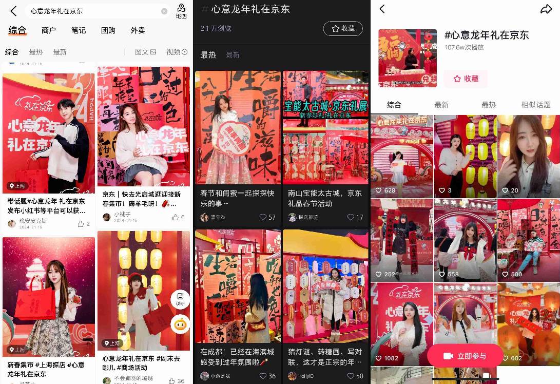 今年的京东礼品年货节的扩大了宣发阵容,除了微博、抖音、小红书,还涵盖了大众点评等线下生活消费方式类的平台,将活动触及到更愿意到线下打卡的人群,同时在QQ音乐等高日活的流媒体平台投放开屏,为活动传播引流持续发力。