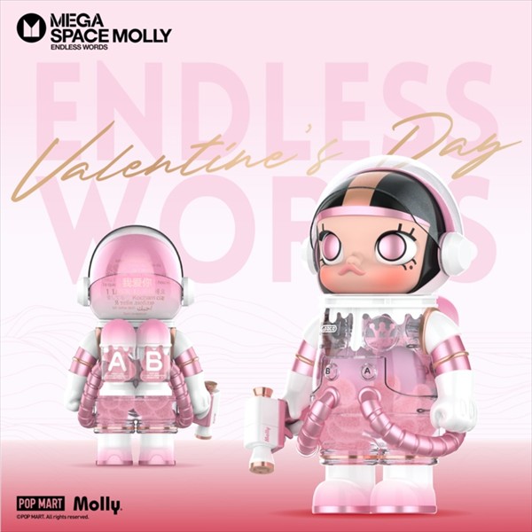 除MEGASPACEMOLLY心语,本次还将以活动限定方式发售极限量的心语千言版本,该版本产品头盔处特别设计了多种语言的“我爱你”字样,仅于泡泡玛特小程序官方商城发售。1000%心语千言版全球限量99体,2月2日18点起通过完成小程序活动任务方式即可获得抢购资格;400%心语千言版全球限量1314体,2月5日13:14起开始抢购。更多信息请关注泡泡玛特或MEGACOLLECTION官方微信公众号。
