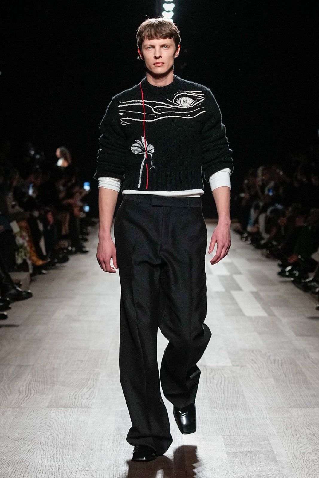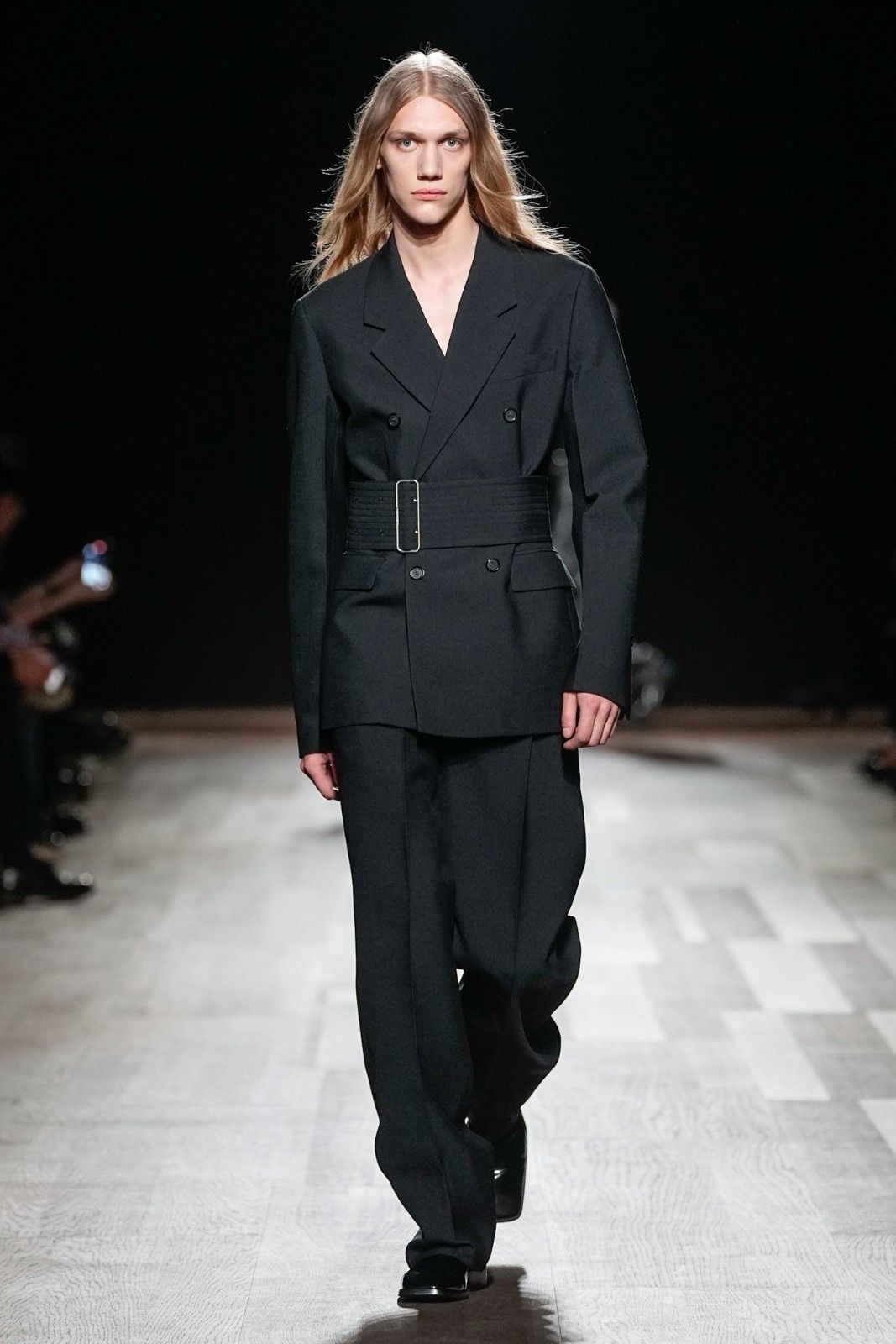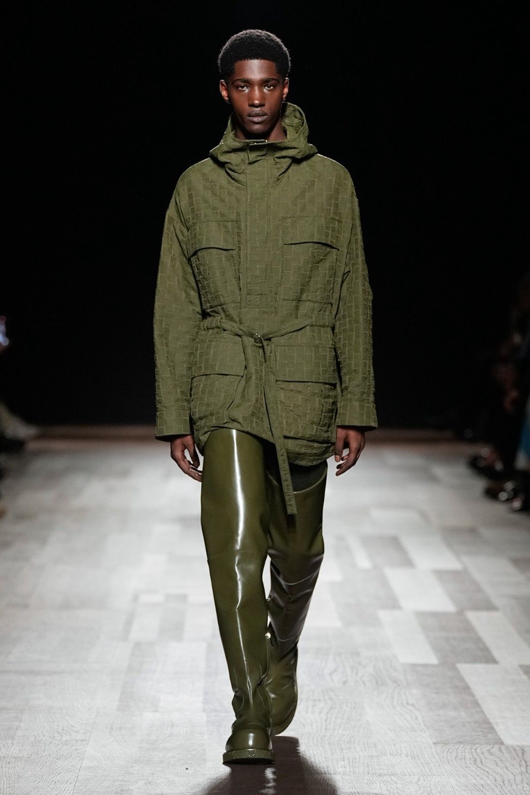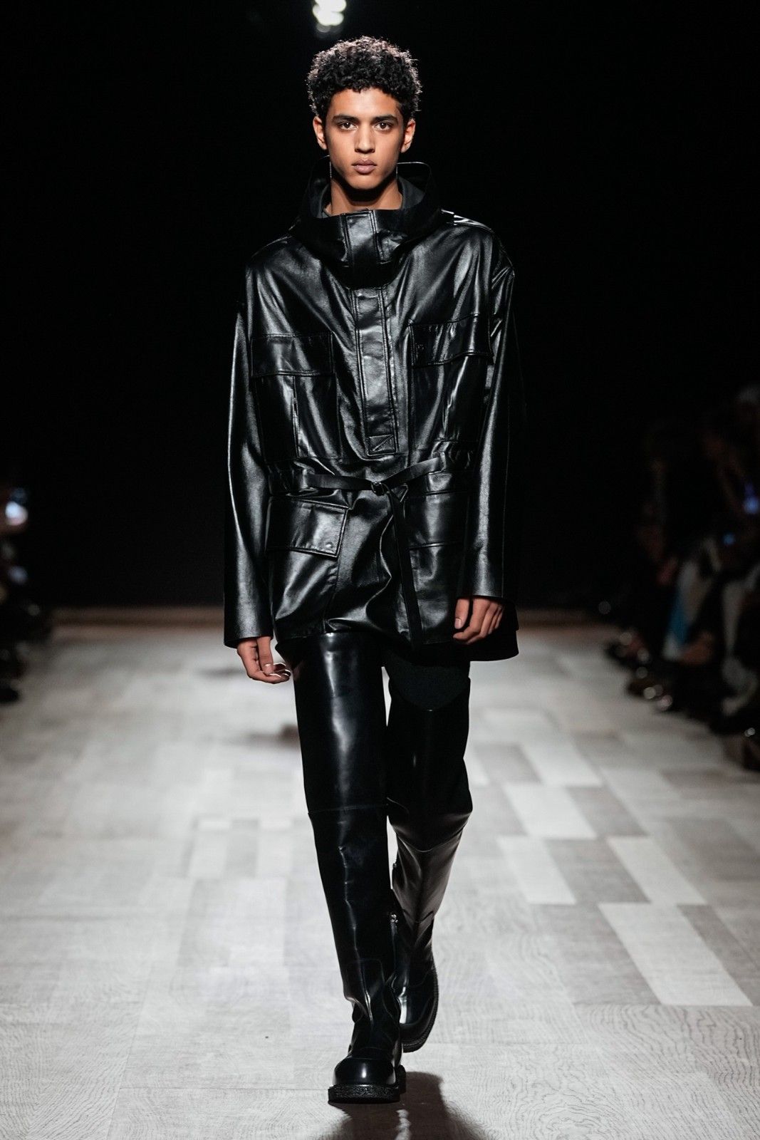 “保护”是时代更迭中经久不衰的主题。1920年代的制服与渔民工作服中常见的及膝防水靴与皮革外套,成为本季造型的灵感之源,与流畅飘逸的垂褶面料形成鲜明对比。工装廓形在面料的加持下愈显柔和:羊毛与羊绒混纺织就,展现奢美舒适质感;皮革采用无衬里结构,塑就宽松休闲版型。不同面料在本季中错综交融,缔造梦寐以求的造型。
