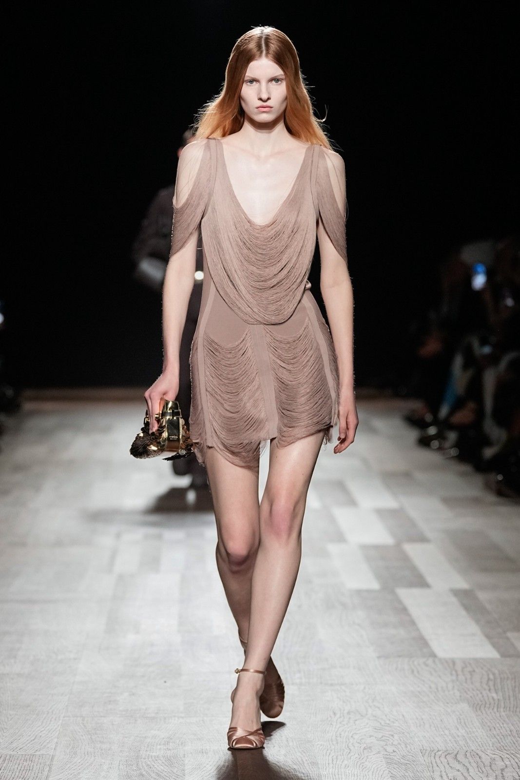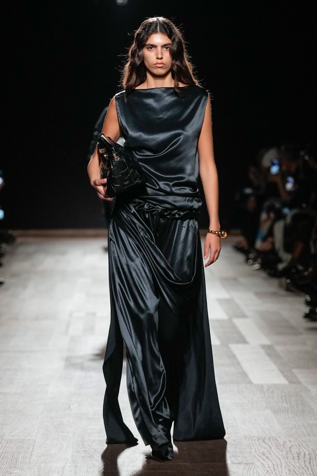 Ferragamo 2024秋冬系列中,创意总监Maximilian Davis透过自身独到视角探索1920年代风貌,凝铸为释放自我的率性态度。立体褶边谐遇飘逸面料,垂坠腰线邂逅宽松剪裁,解放时代的视觉特质经过简化琢炼,反映过往与如今两个二十年代中的自我表达。Maximilian Davis阐释道:“1920年代时,人们以着装展现自由意志。那自由表达的随性态度,恰与我的经历和Ferragamo的精髓同频共鸣。”